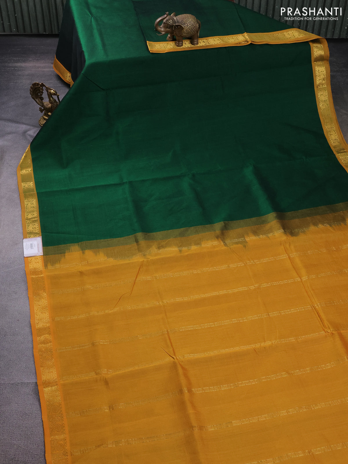 10 Yards silk cotton saree dark green and dark mustard with plain body and annam zari woven border