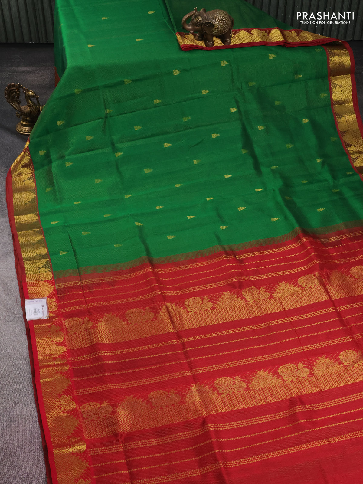 10 yards silk cotton saree green and maroon with allover vairaosi pattern & zari buttas and zari woven border