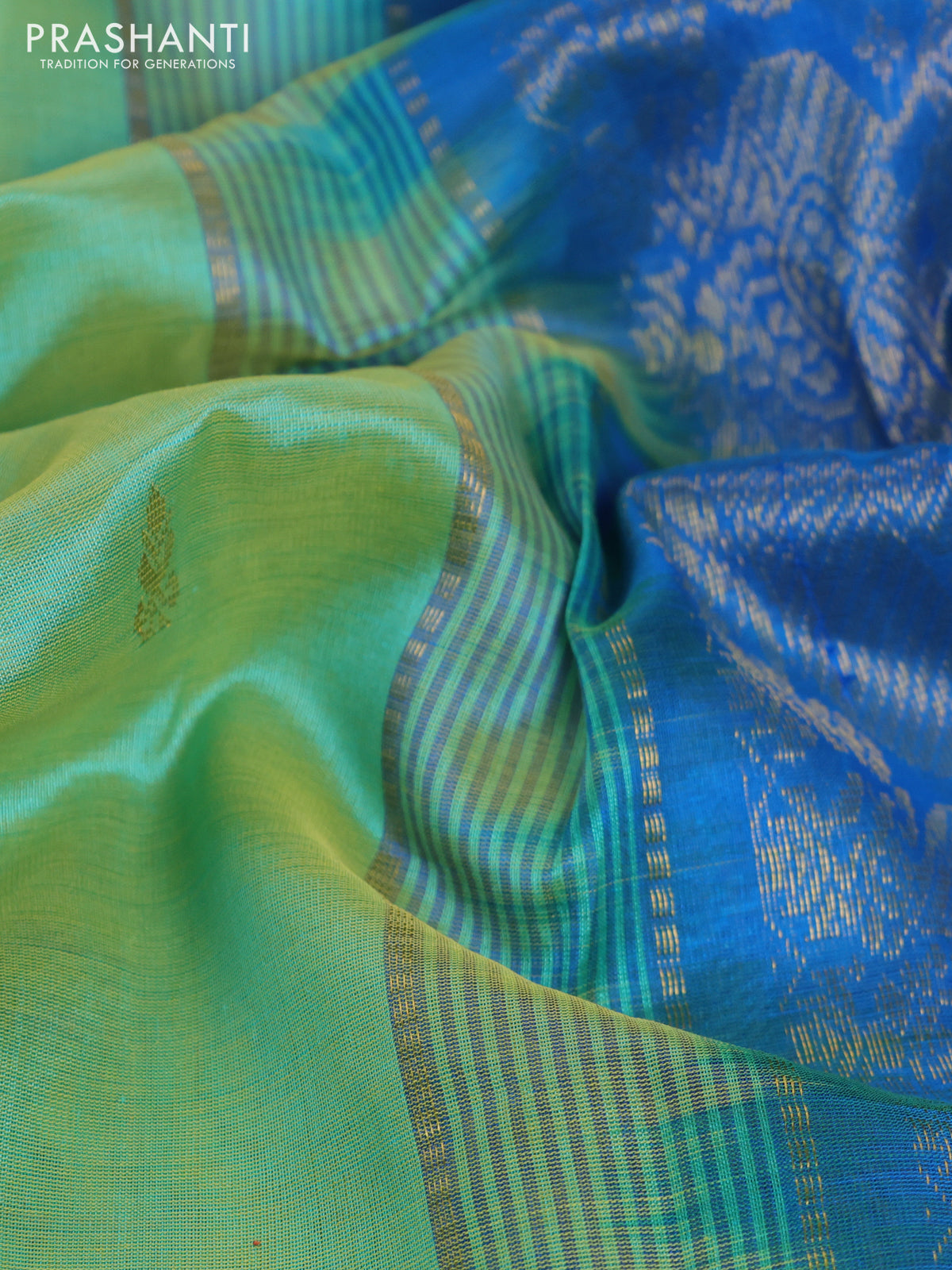 10 Yards silk cotton saree teal green and cs blue with zari woven buttas and zari woven border
