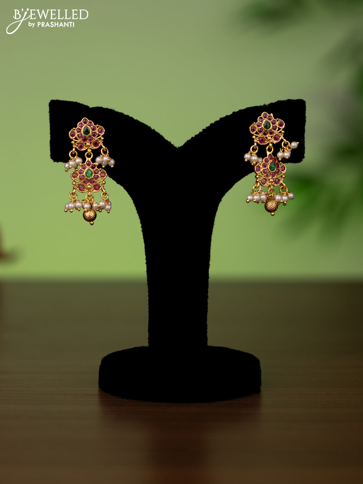 Antique attigai necklace with kemp stones and pearl & golden beads hanging