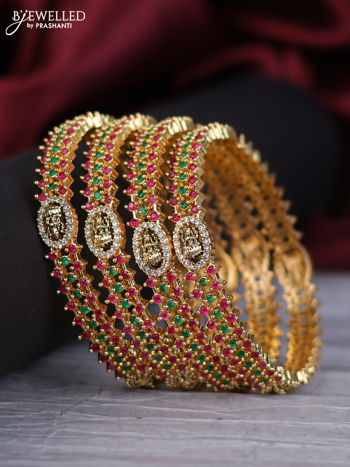 Antique bangles lakshmi design with kemp and cz stones