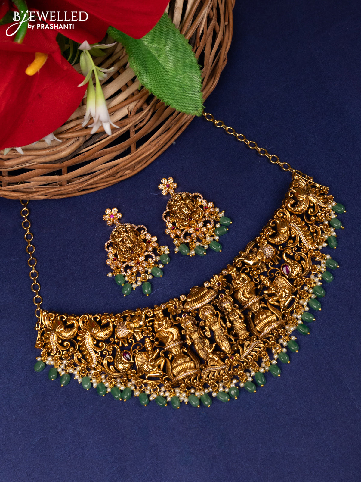Antique choker ramar pattabhishekam with kemp,cz stones and green beads hangings