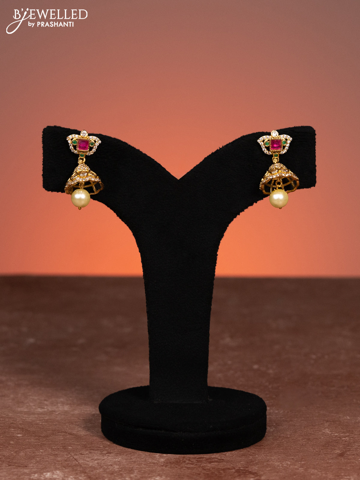 Antique choker with kemp & cz stones and pearl hanging