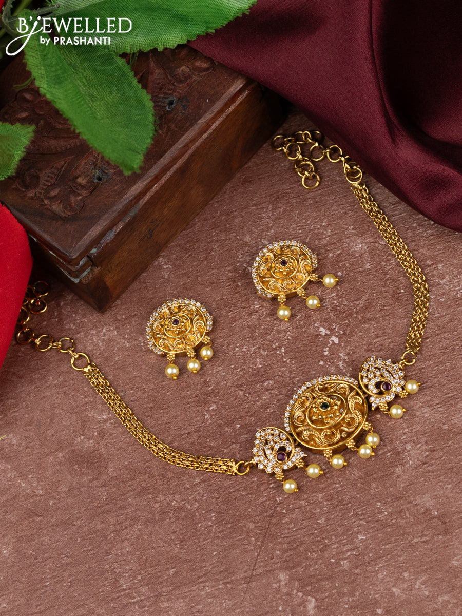 Antique choker with kemp & cz stones and pearl hangings