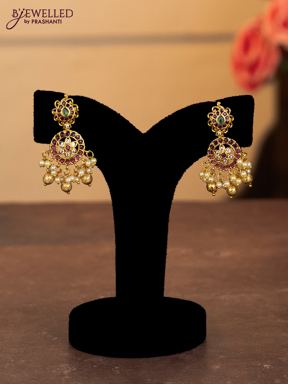 Antique combo set manga pattern with kemp & cz stones and pearl & golden beads hangings