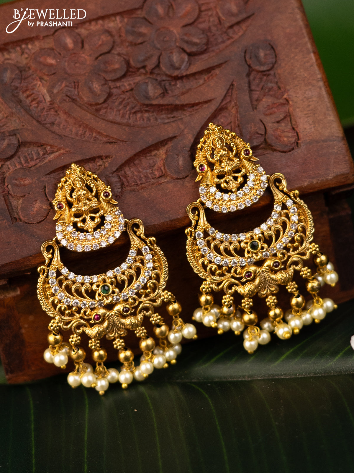 Antique earrings lakshmi design with kemp & cz stones and pearl hangings