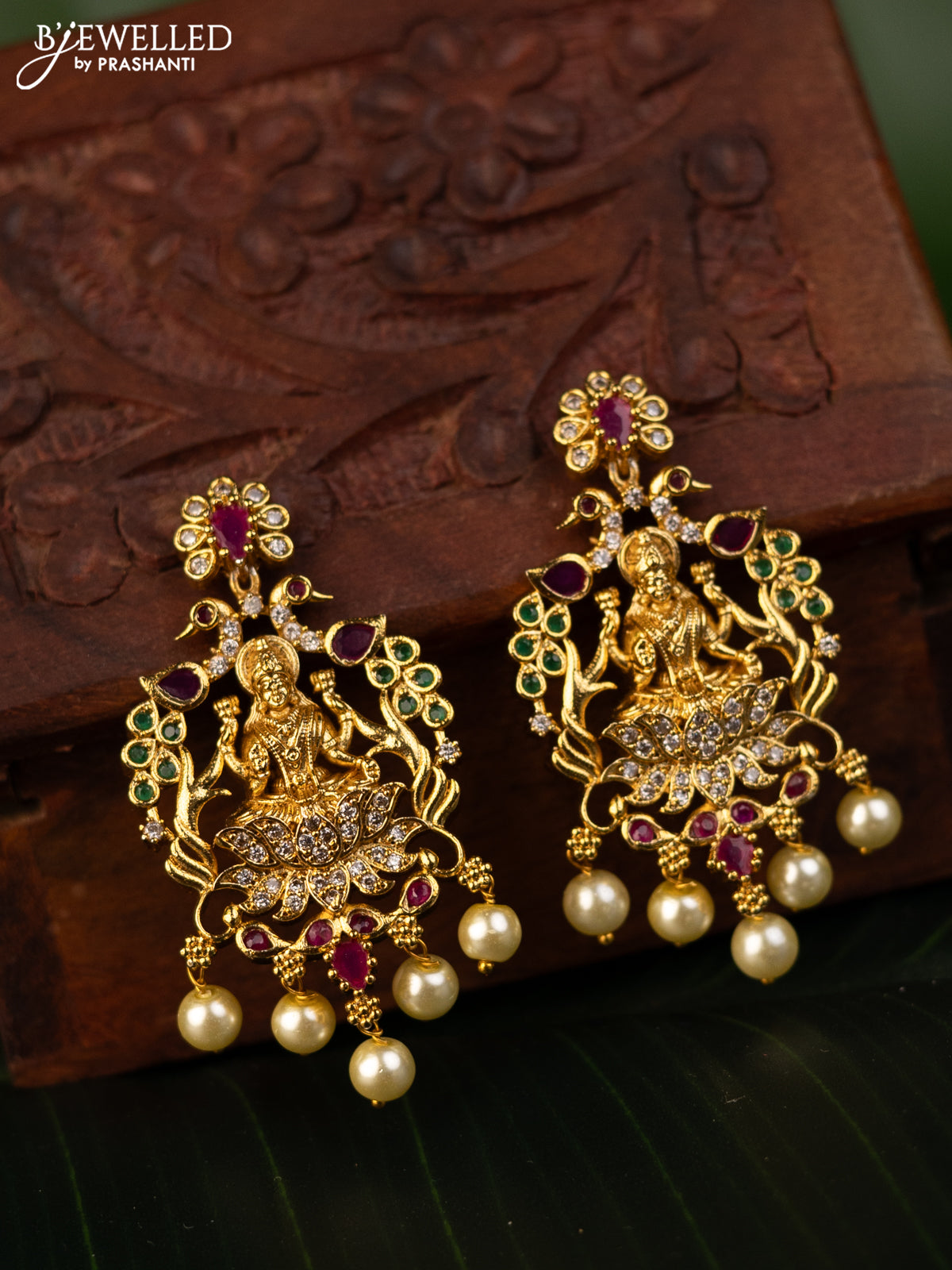 Antique earrings lakshmi design with kemp & cz stones and pearl hangings