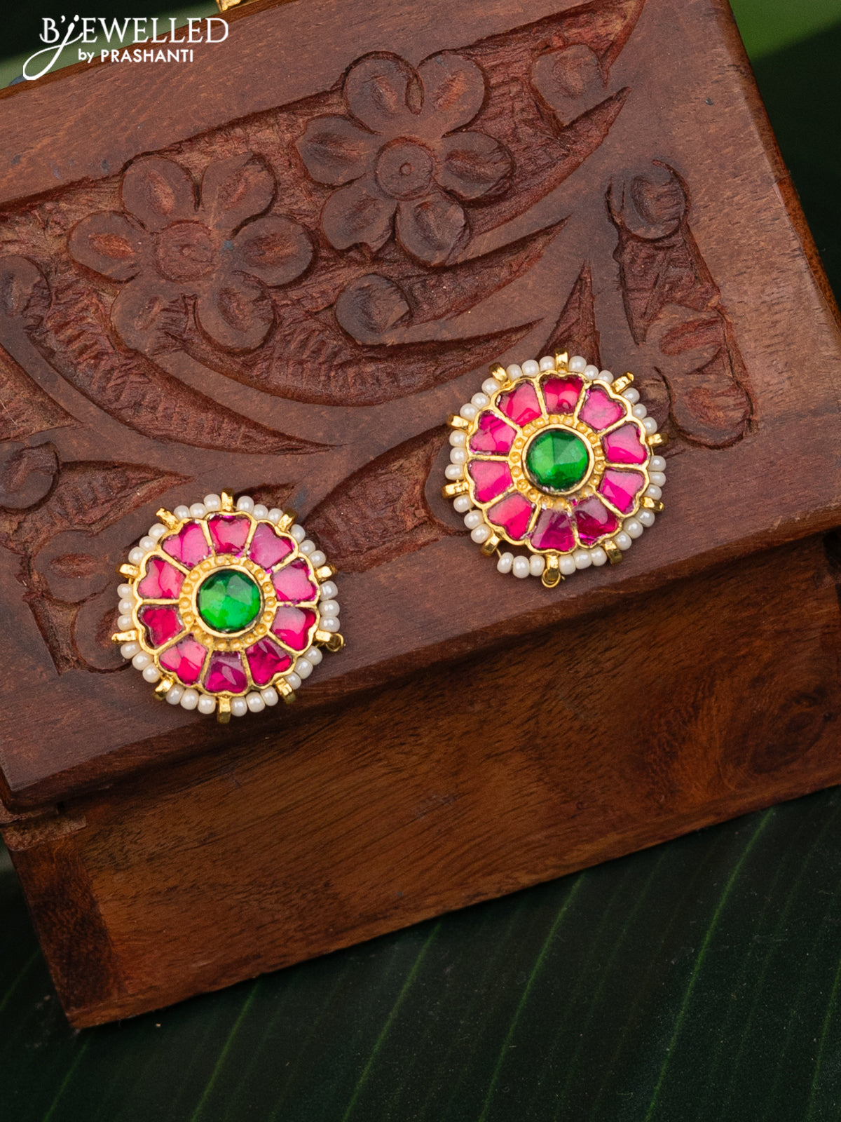 Antique earrings with kemp pachi kundan stones and pearls