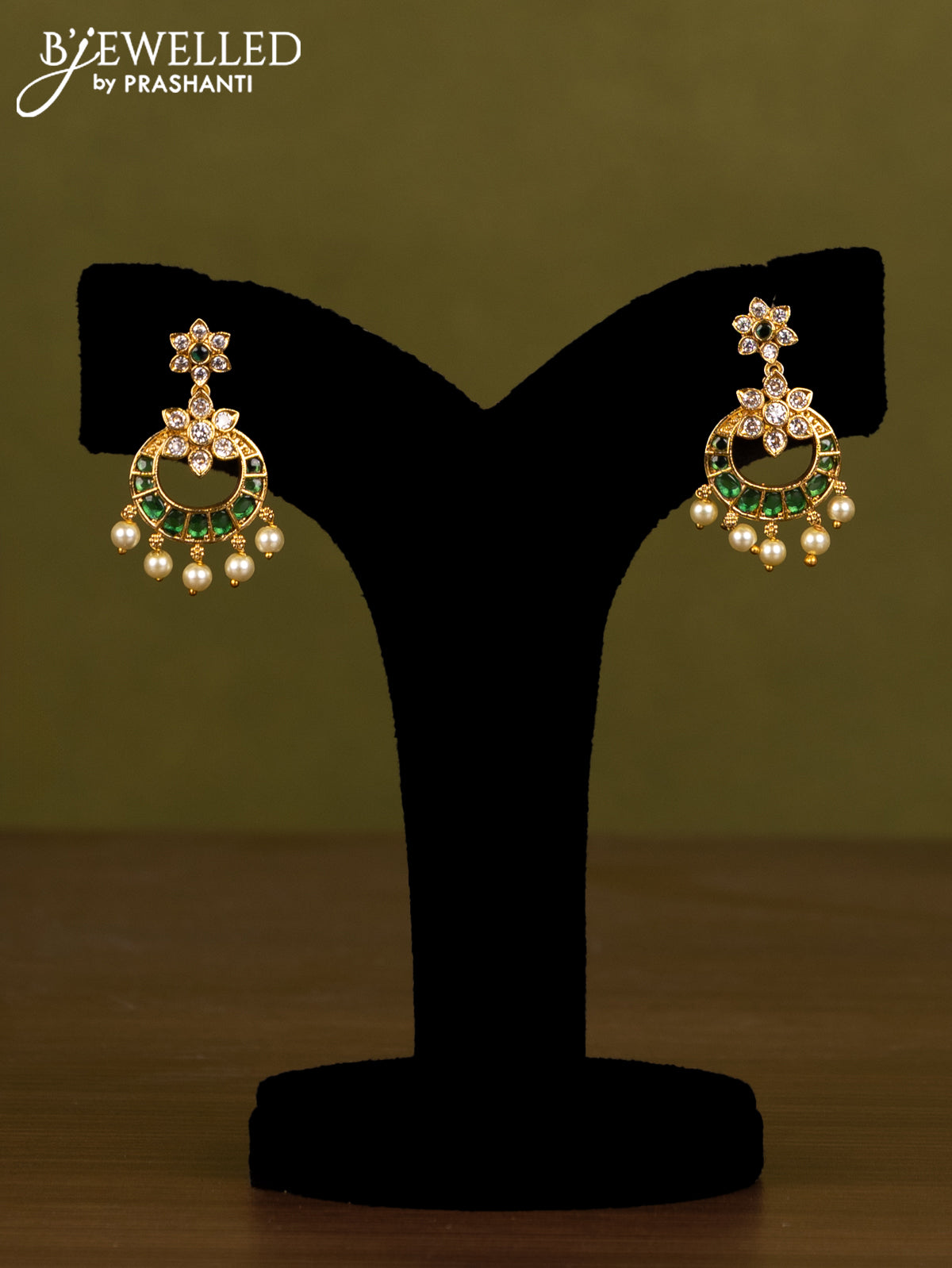Antique guttapusalu haaram chandbali design with green kemp & cz stones and pearl hangings