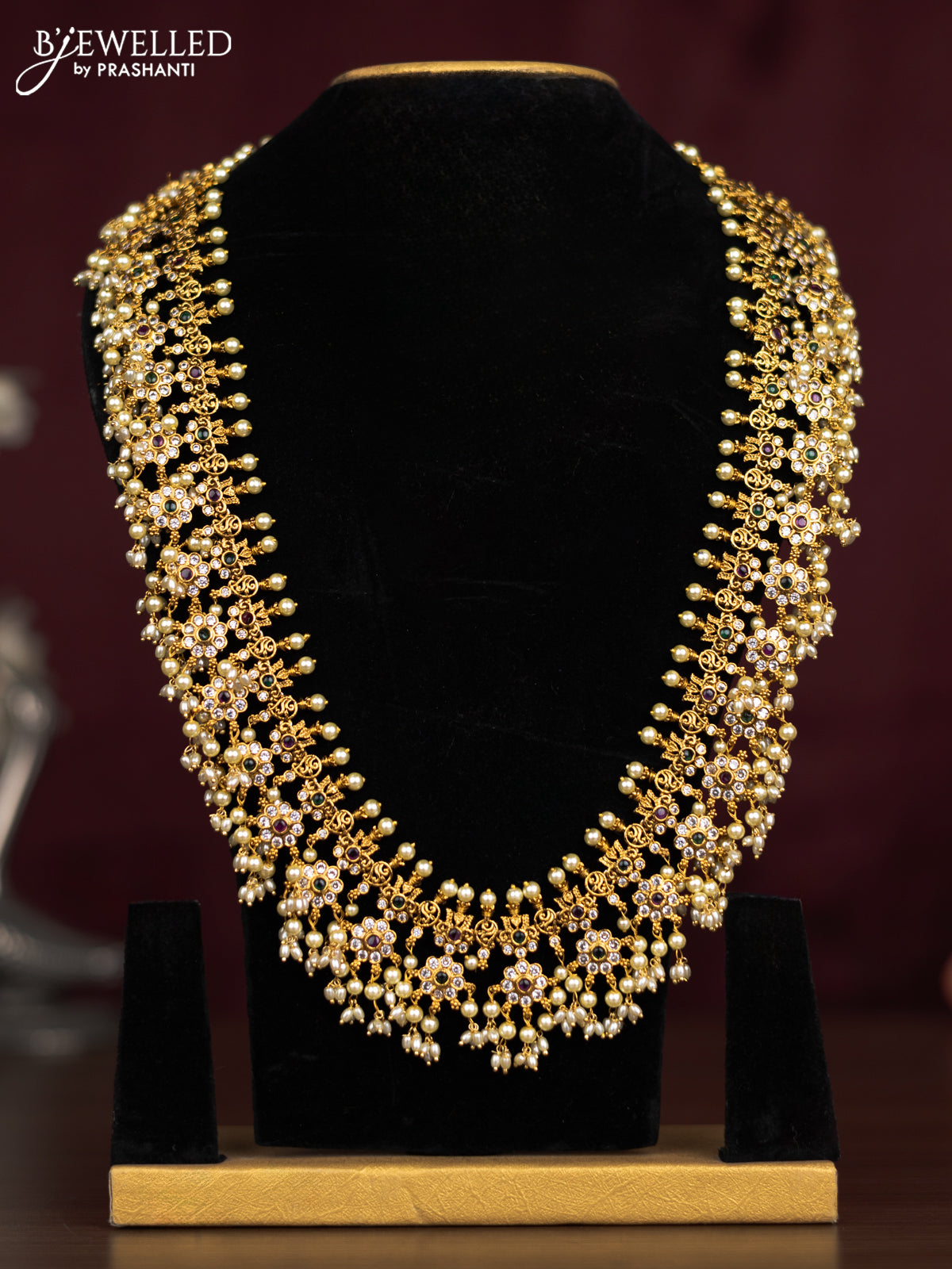 Antique guttapusalu haaram floral design with kemp & cz stones and pearl hangings without earring
