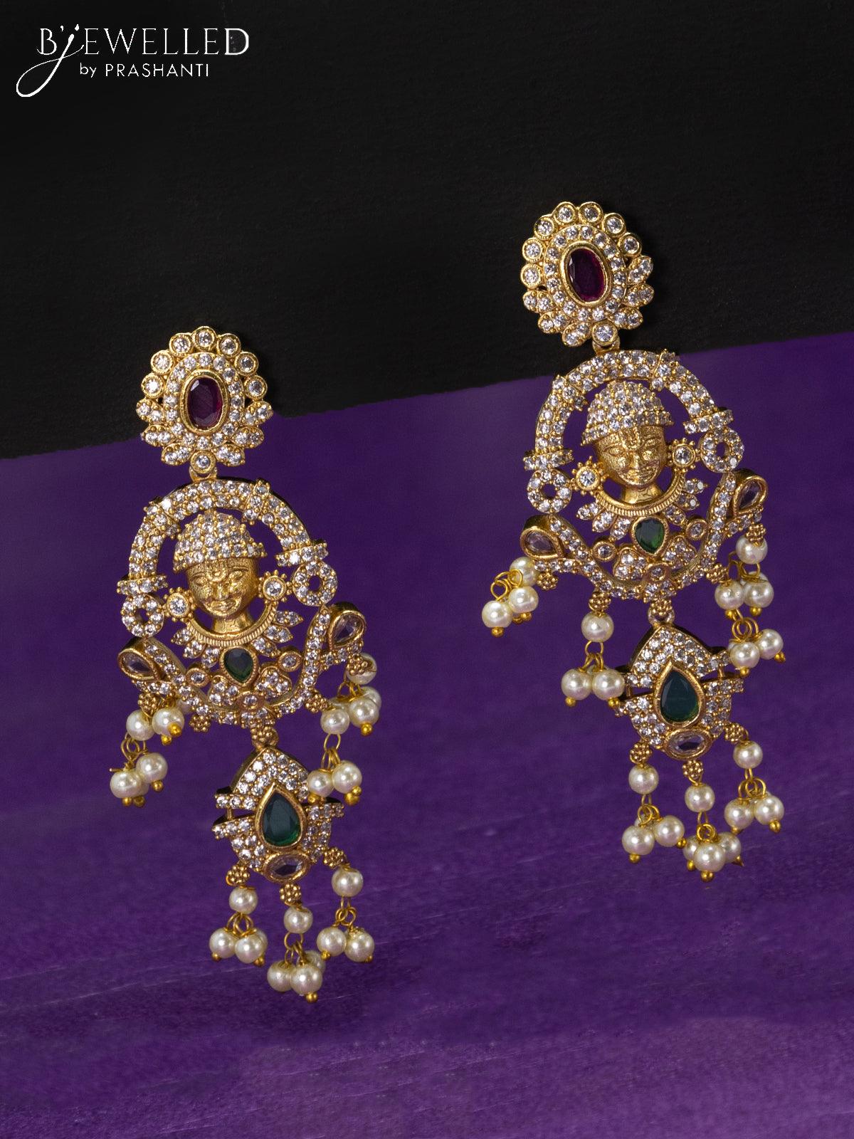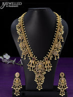 Antique guttapusalu haaram kemp & cz stones with tirupati balaji pendant and pearl hangings