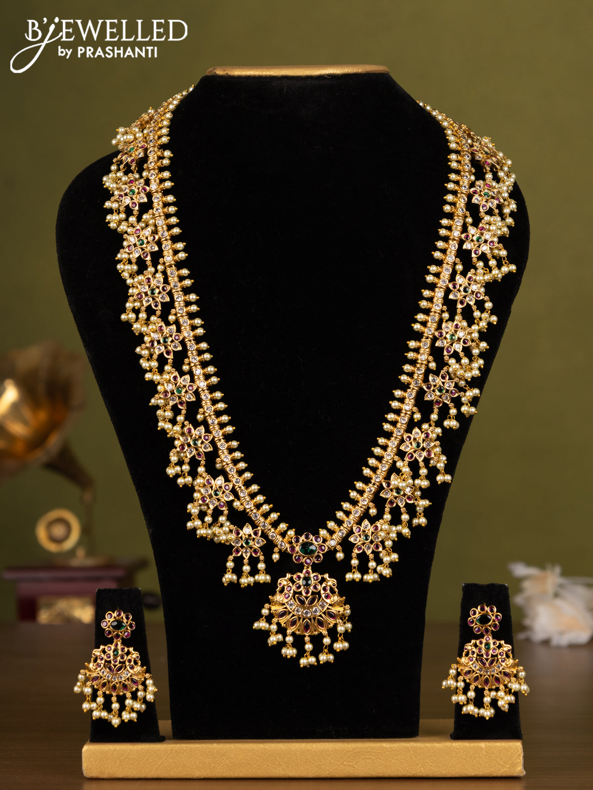 Antique guttapusalu haaram with kemp & cz stones and pearl hangings