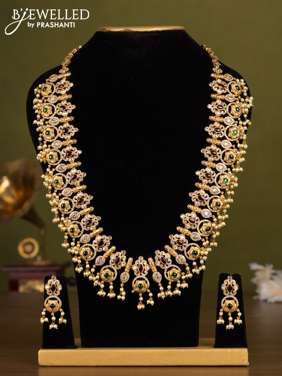 Antique guttapusalu haaram with kemp & cz stones and pearl hangings