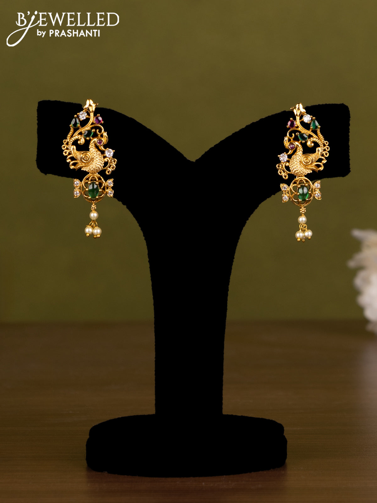 Antique guttapusalu haaram with kemp & cz stones and pearl hangings