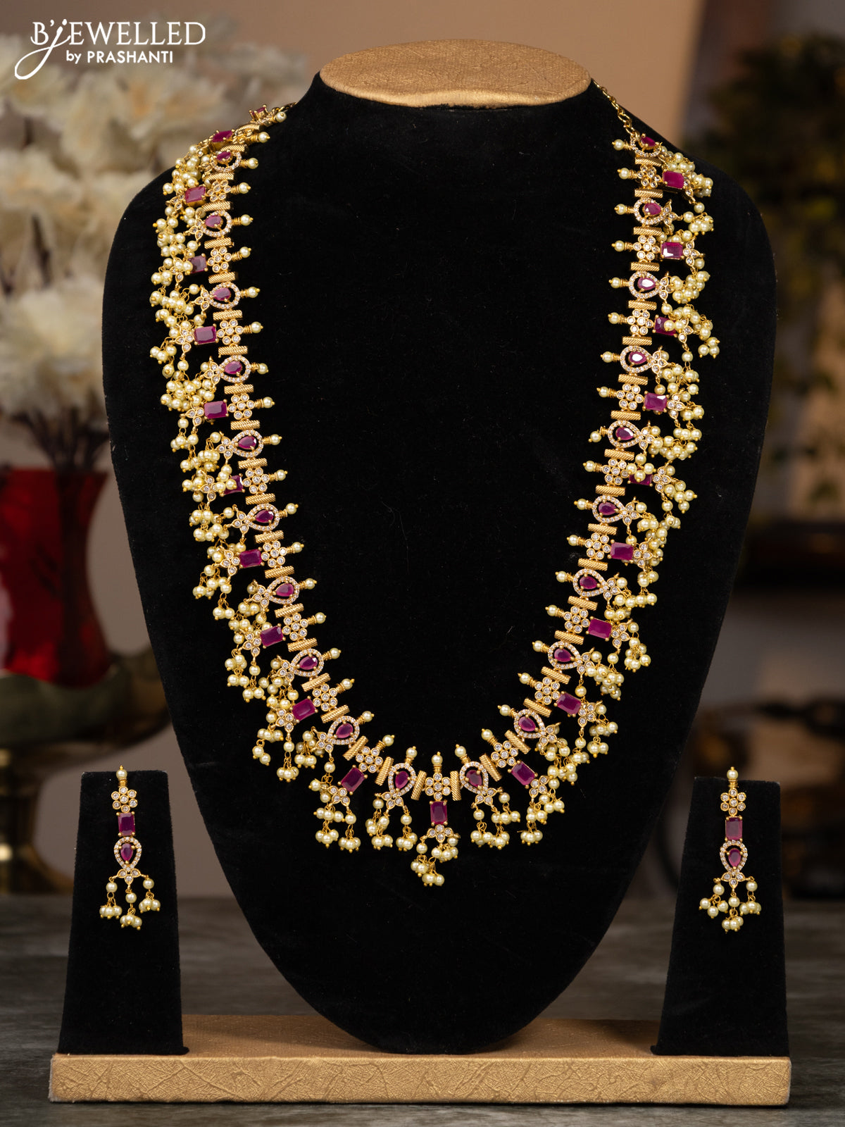 Antique guttapusalu haaram with pink kemp & cz stones and pearl hangings