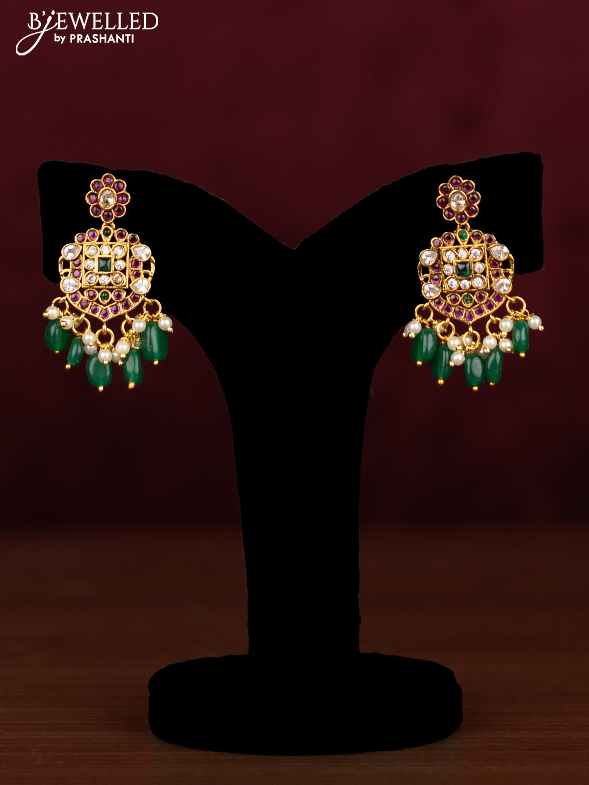 Antique guttapusalu necklace manga pattern with kemp & cz stones and pearl & beads hanging