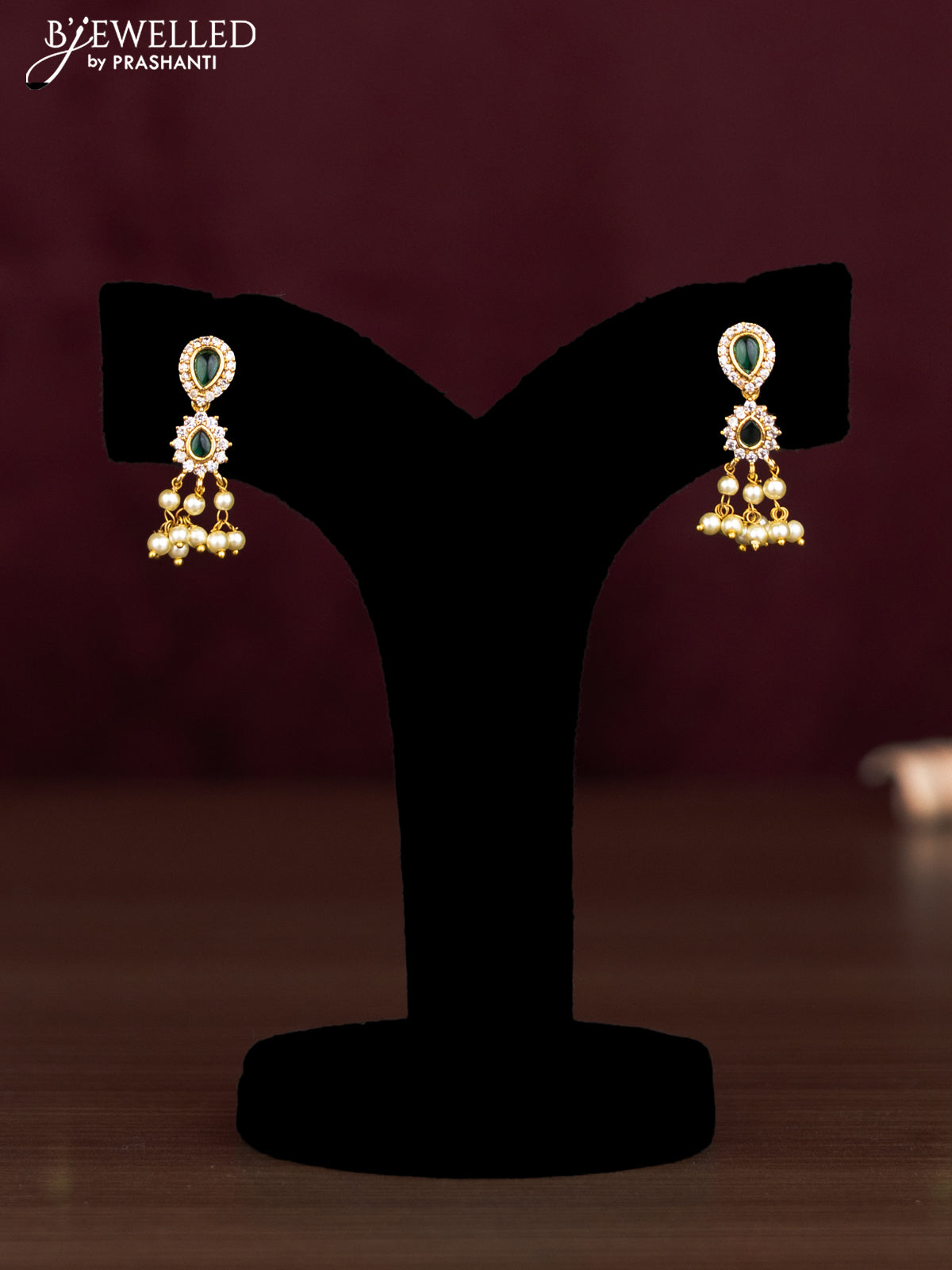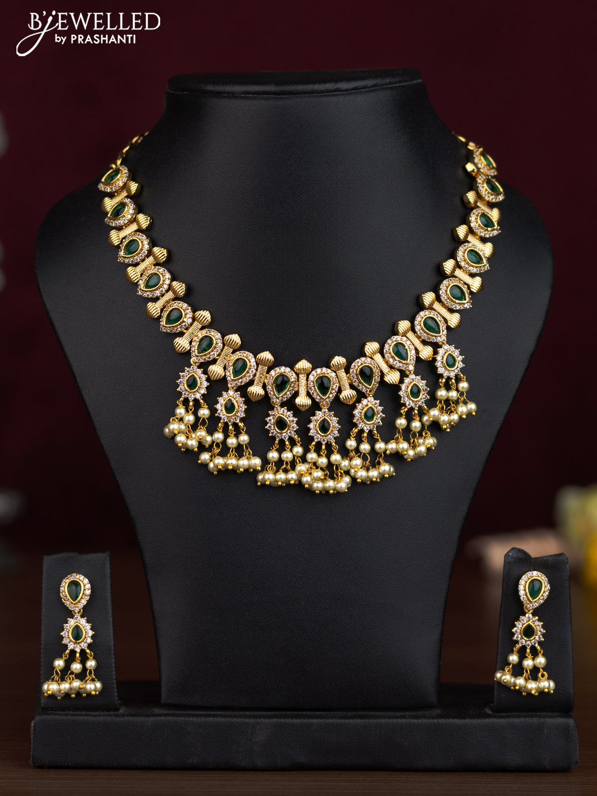 Antique guttapusalu necklace with emerald & cz stones and pearl hangings