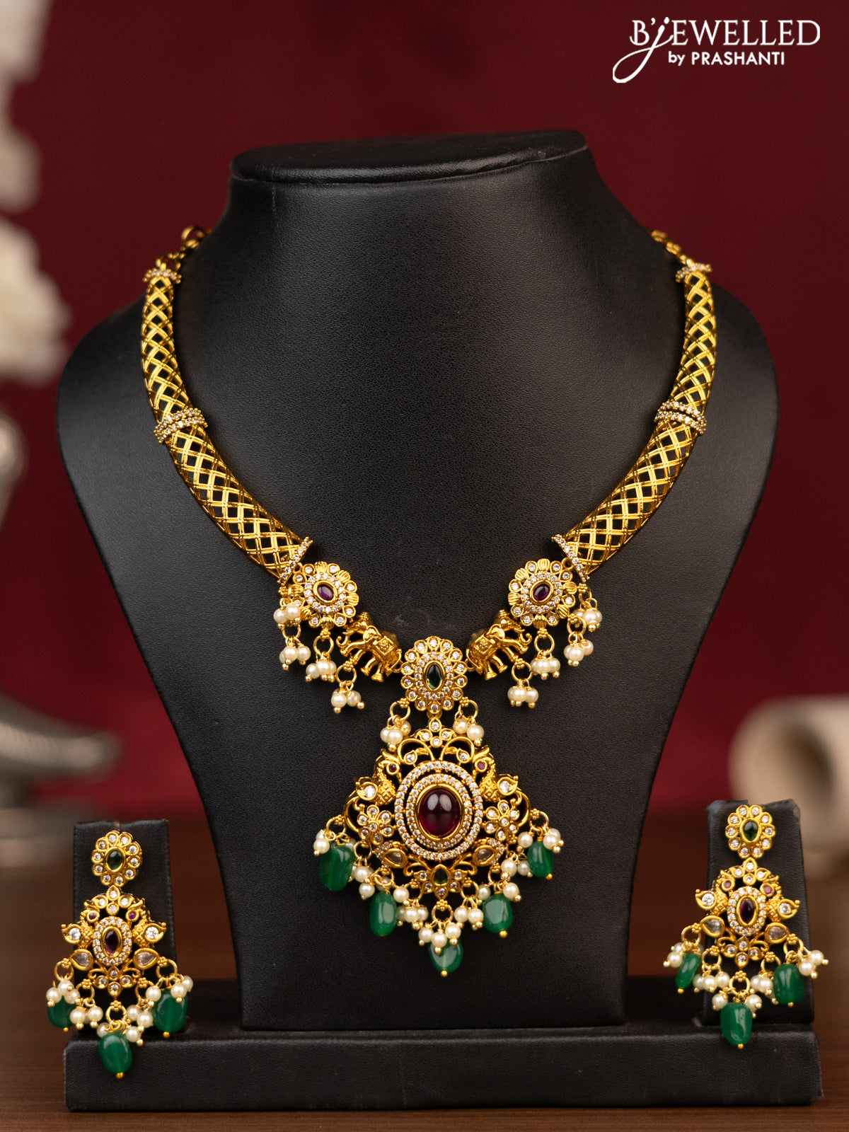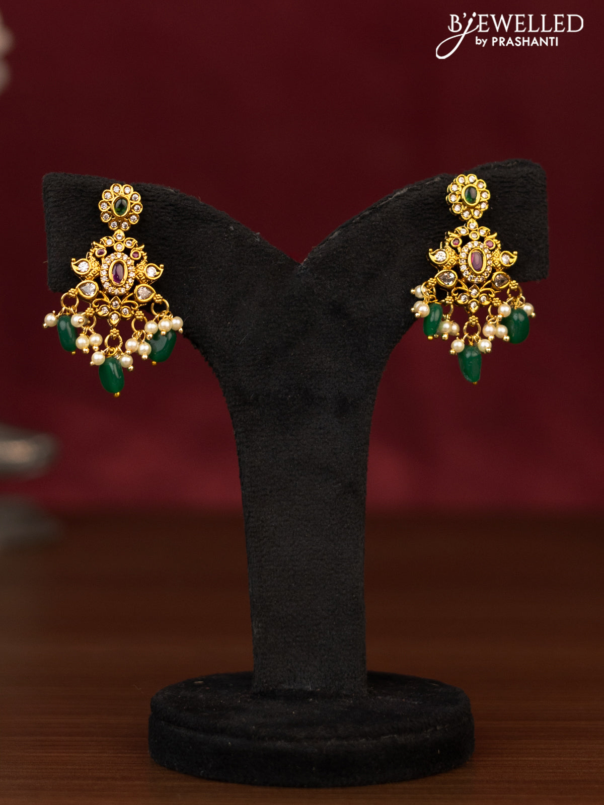 Antique guttapusalu necklace with kemp & cz stones and pearl & beads hanging