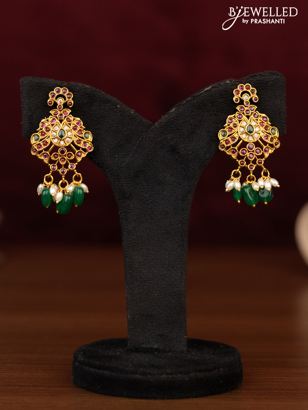 Antique guttapusalu necklace with kemp & cz stones and pearl & beads hanging