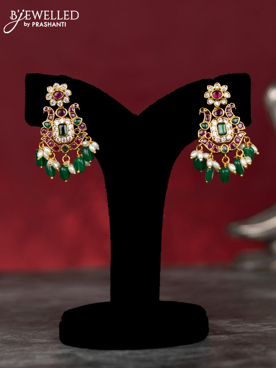 Antique guttapusalu necklace with kemp & cz stones and pearl & green beads hangings