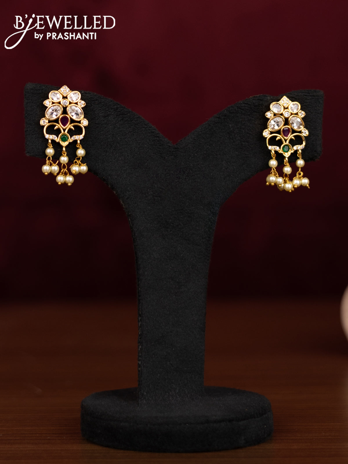 Antique guttapusalu necklace with kemp & cz stones and pearl hangings