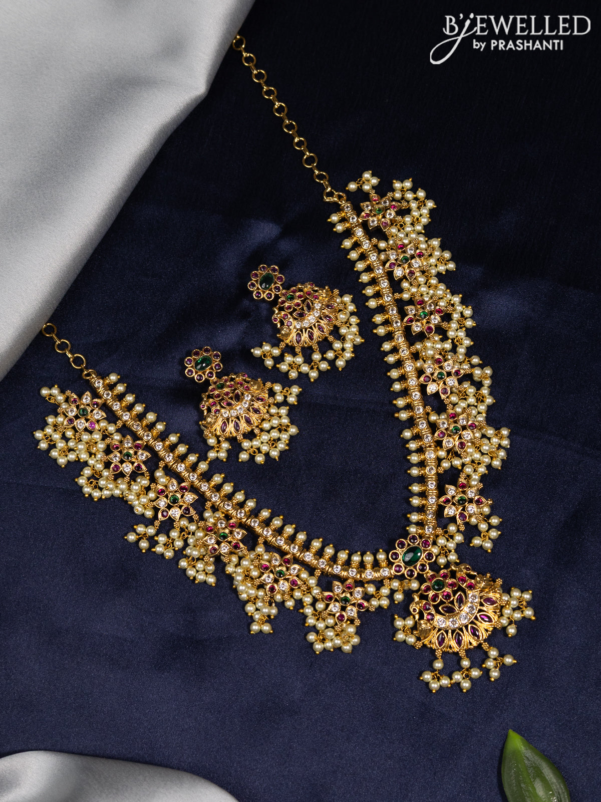 Antique guttapusalu necklace with kemp & kundan stones and pearl hangings