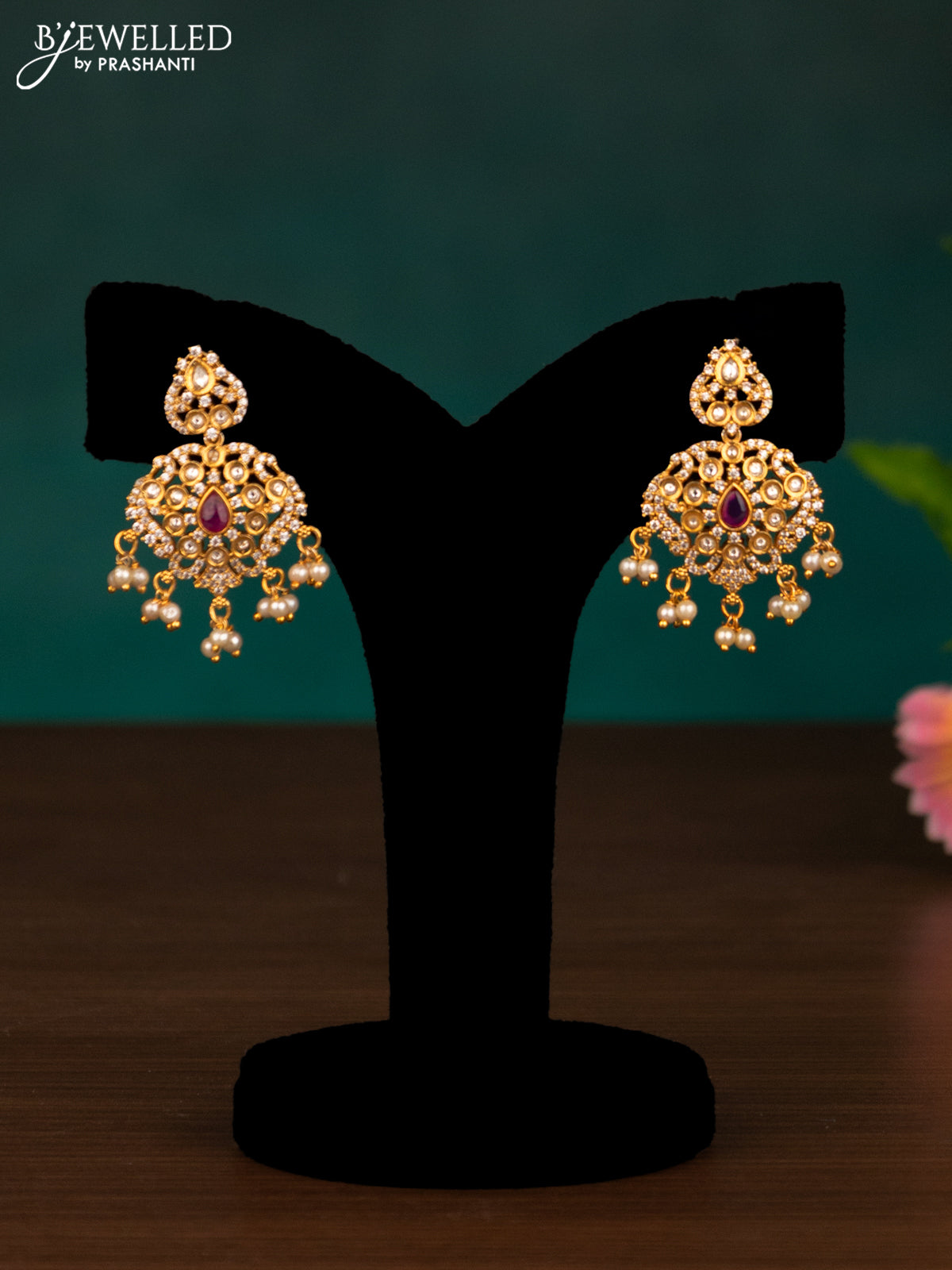 Antique haaram elephant design with pink kemp & cz stones and pearl hangings