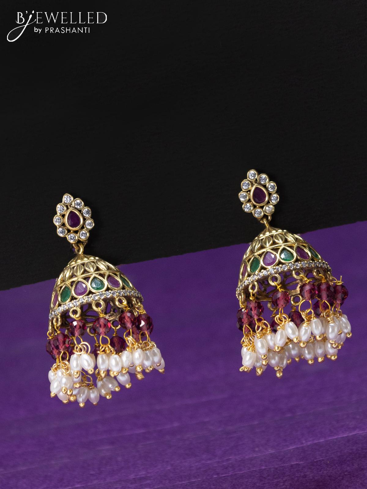 Antique haaram kemp & cz stones with lakshmi pendant and pearl hangings