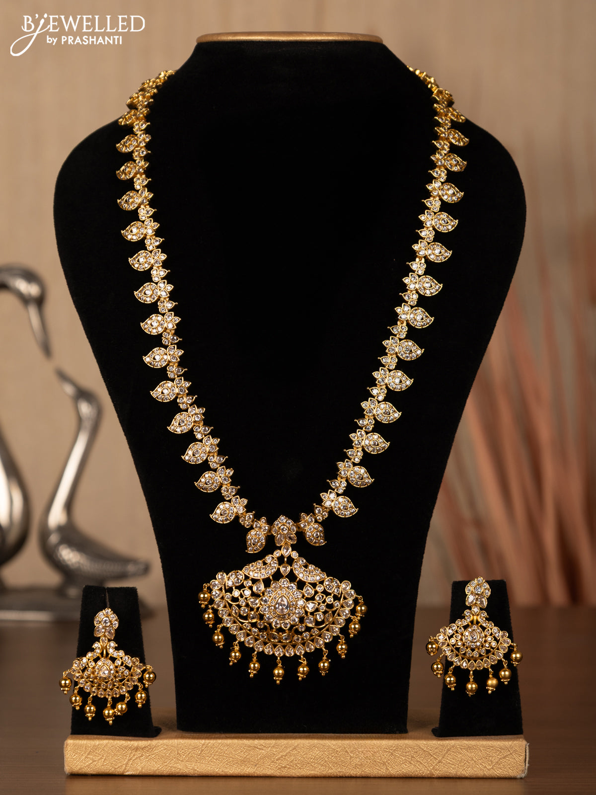 Antique haaram manga pattern with cz stones and golden beads hanging