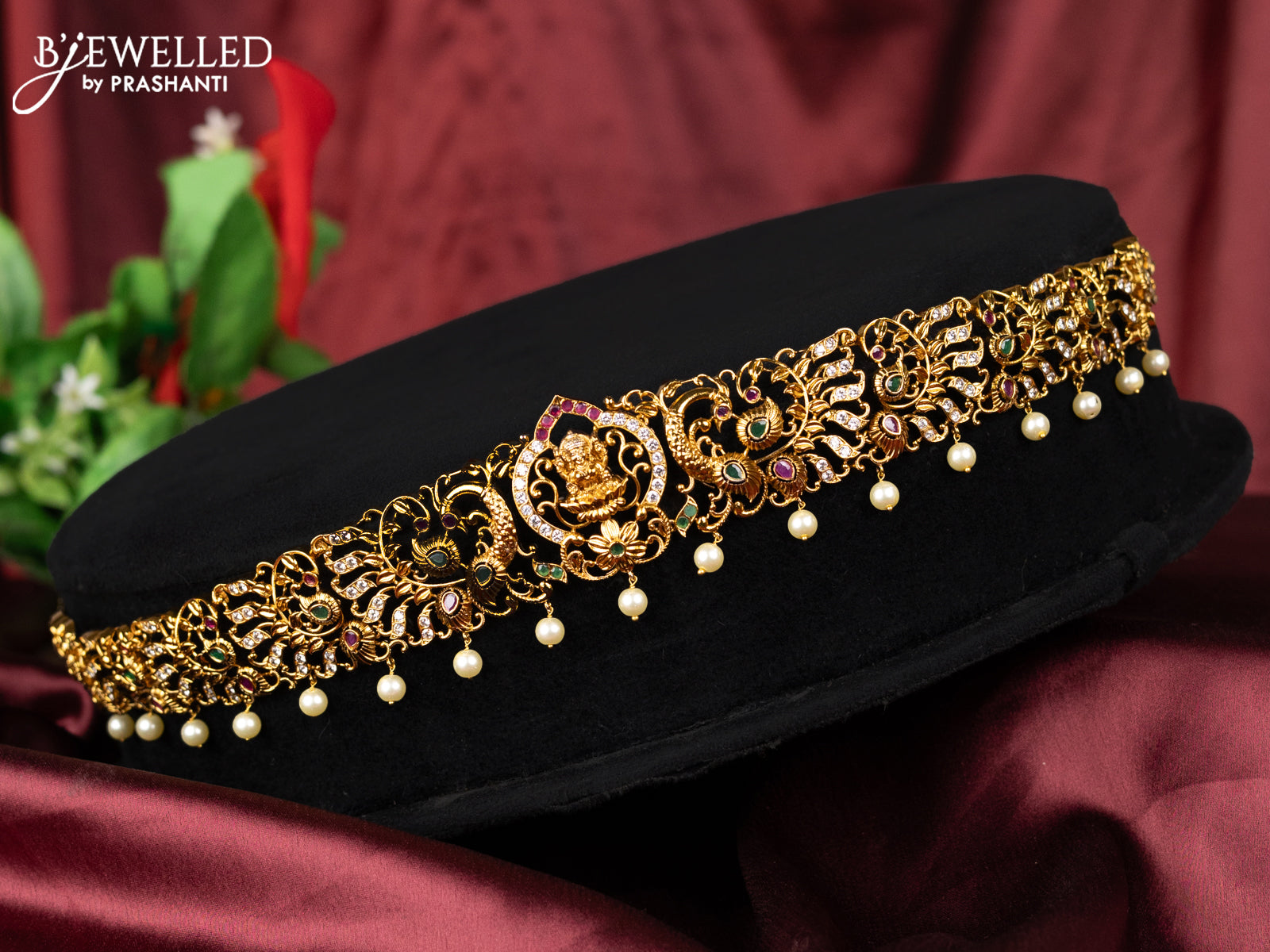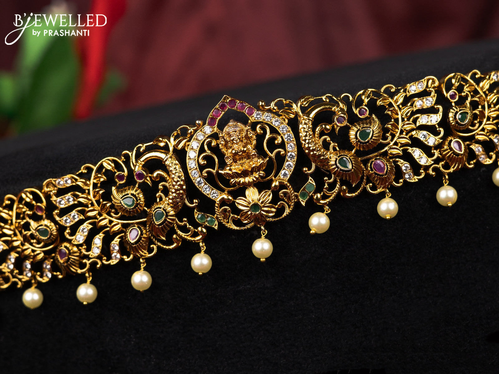 Antique hip belt lakshmi design with kemp & cz stones and pearl hangings