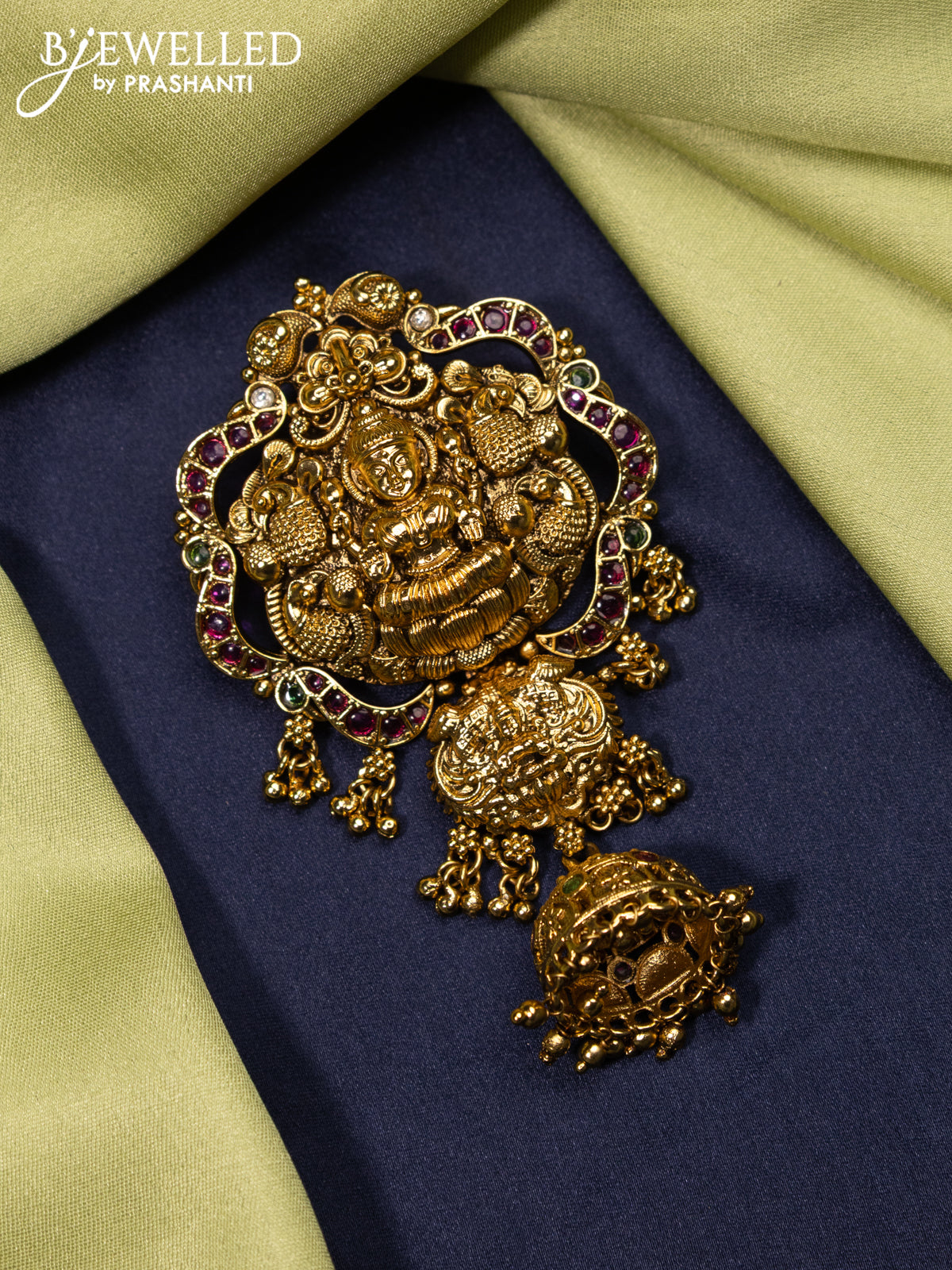 Antique jada billai lakshmi design with kemp & kundan stones and golden beads hanging