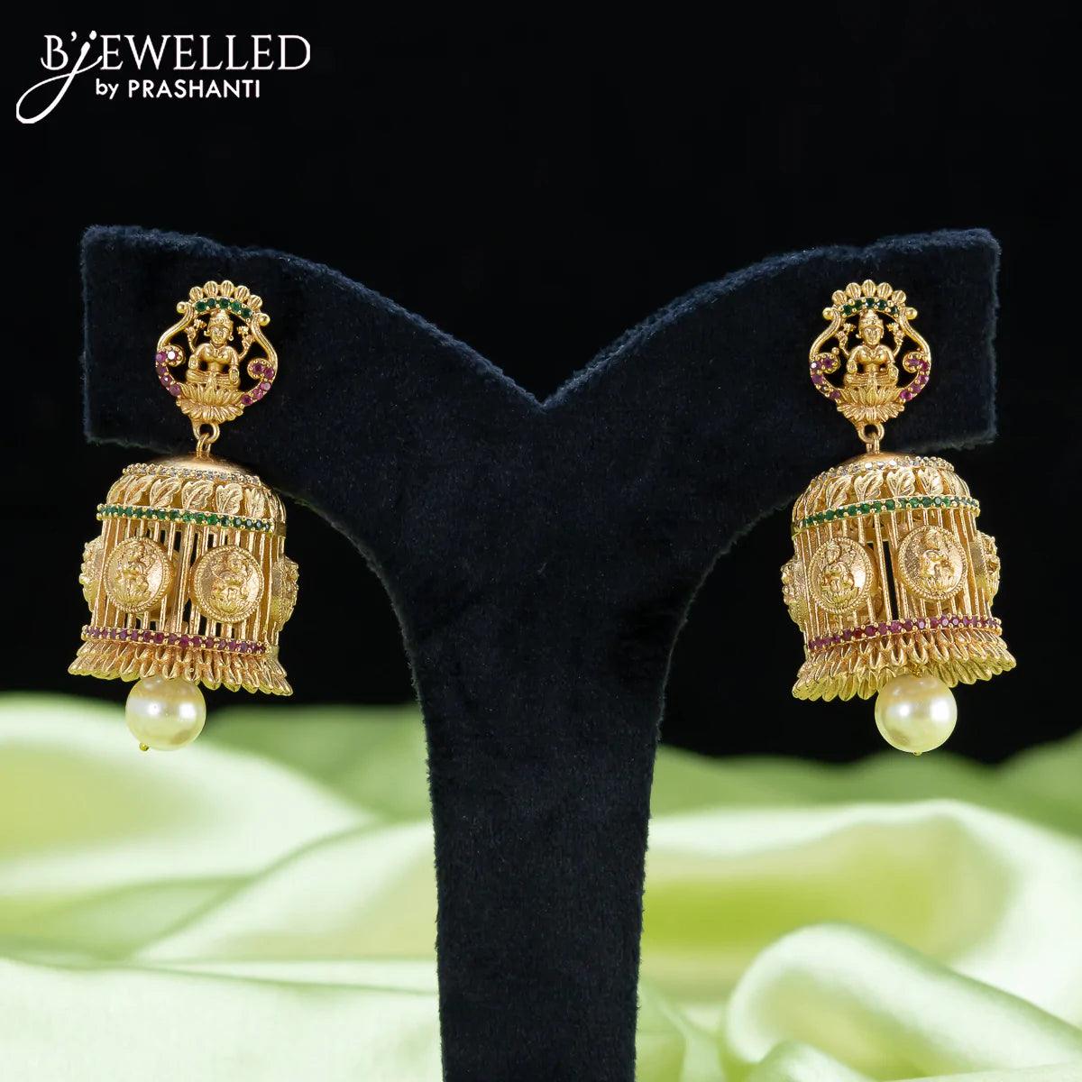 Antique jhumka lakshmi design with kemp stone and pearl hangings