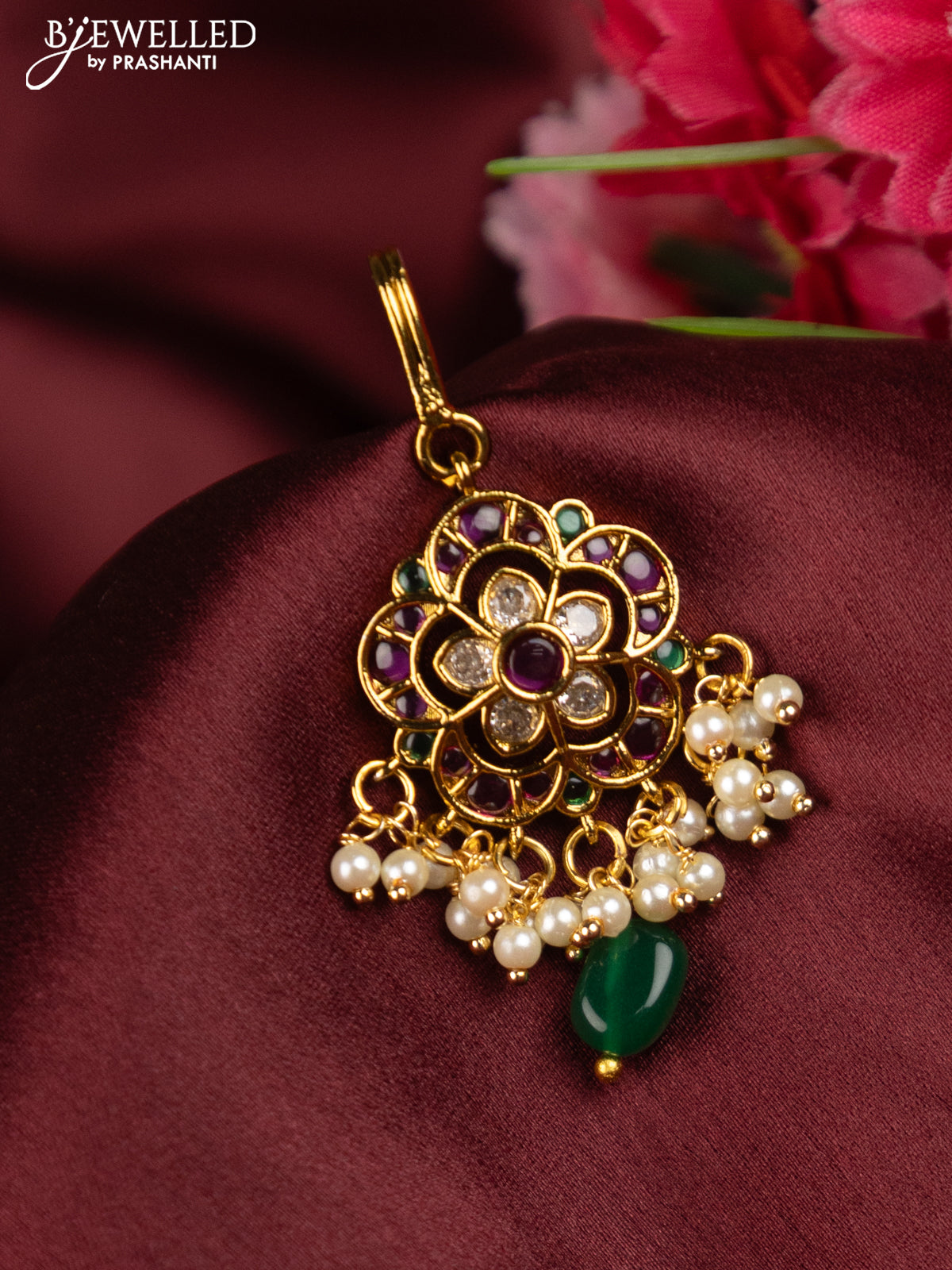 Antique maang tikka flower design with kemp & cz stones and pearls
