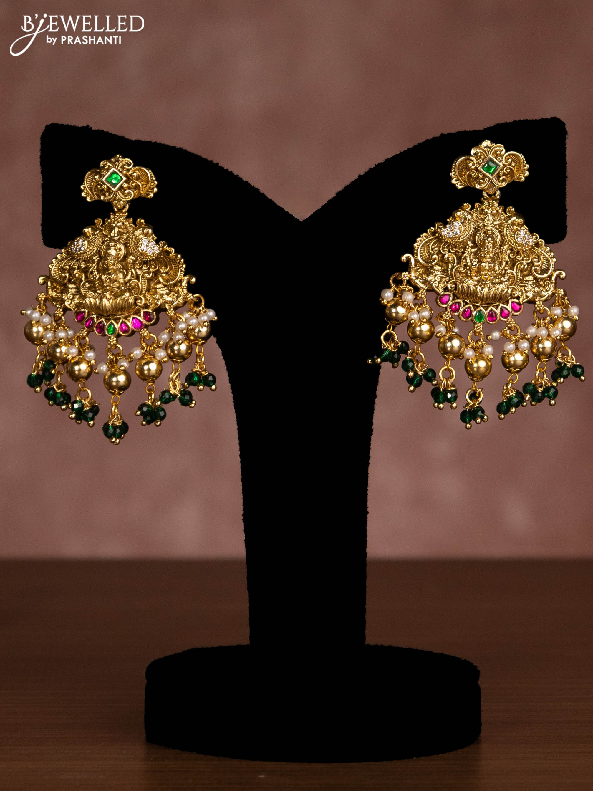 Antique necklace lakshmi design with jadau stones and green beads hanging