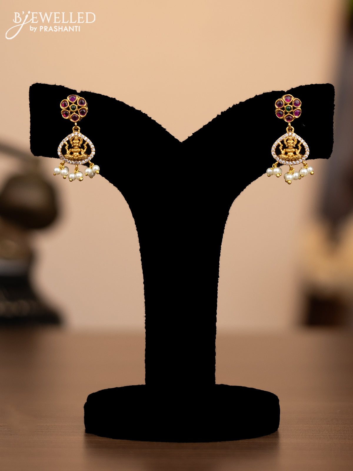 Antique necklace lakshmi design with kemp & cz stones and pearl hangings