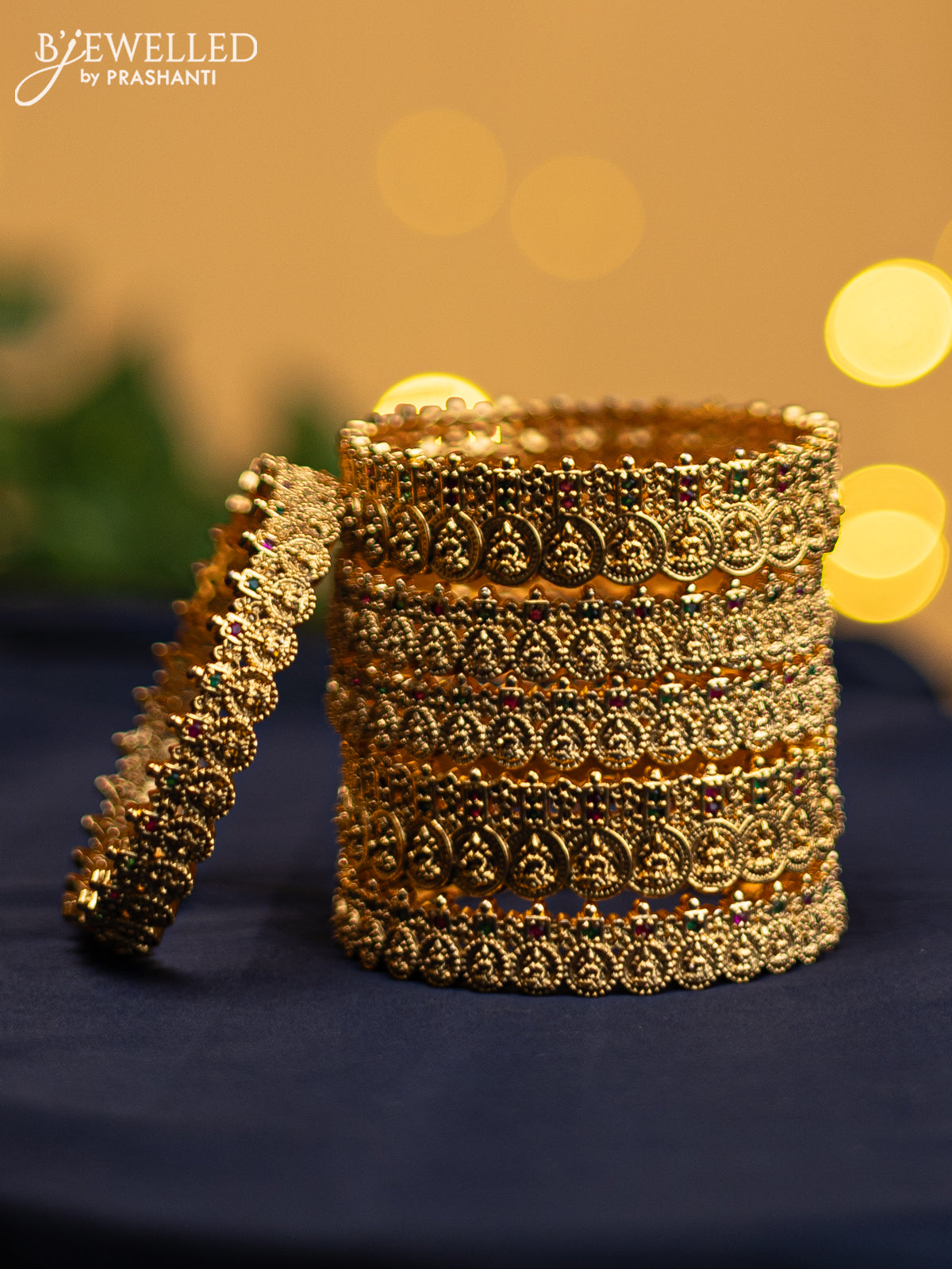 Antique rajawadi bangle lakshmi design with kemp stones