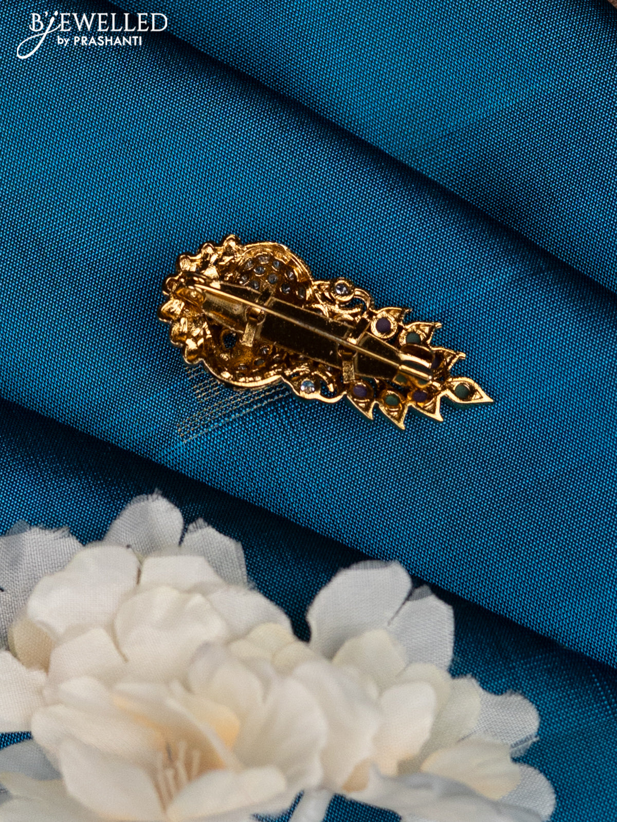 Antique saree pin kalasha & peacock design wih kemp and cz stones