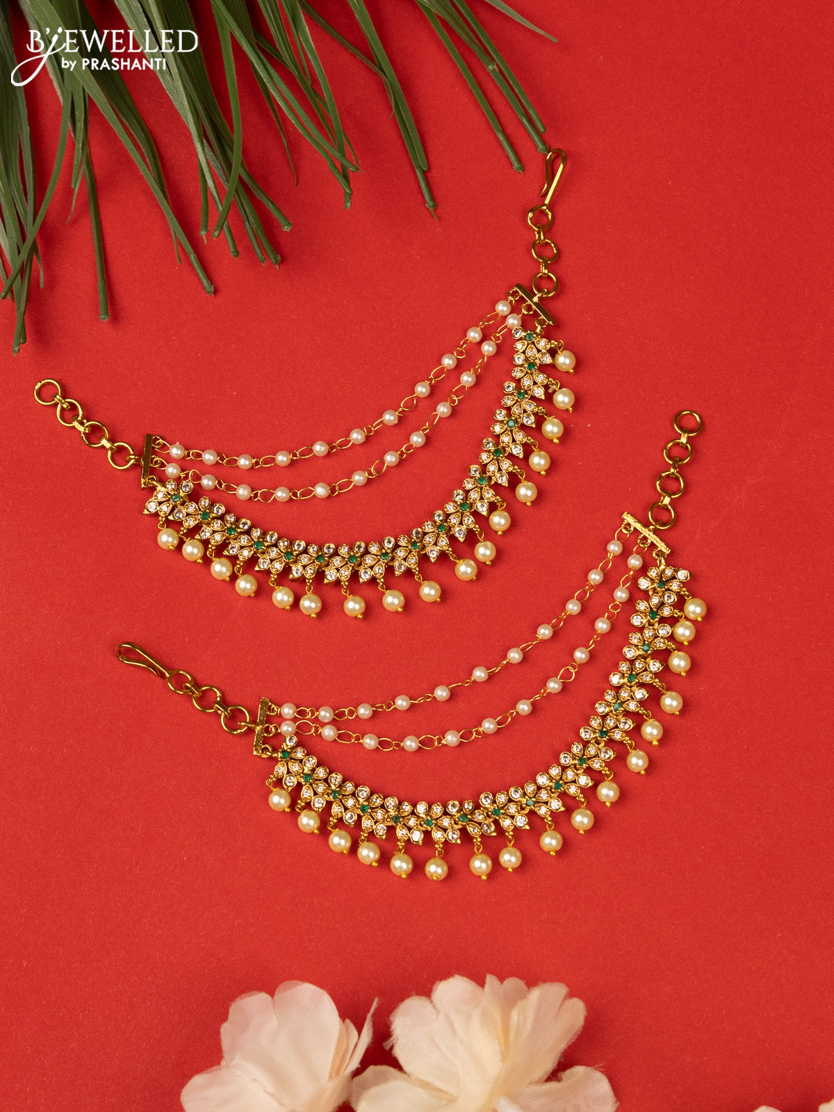 Antique triple layer mattal with green kemp & cz stones and pearl hangings