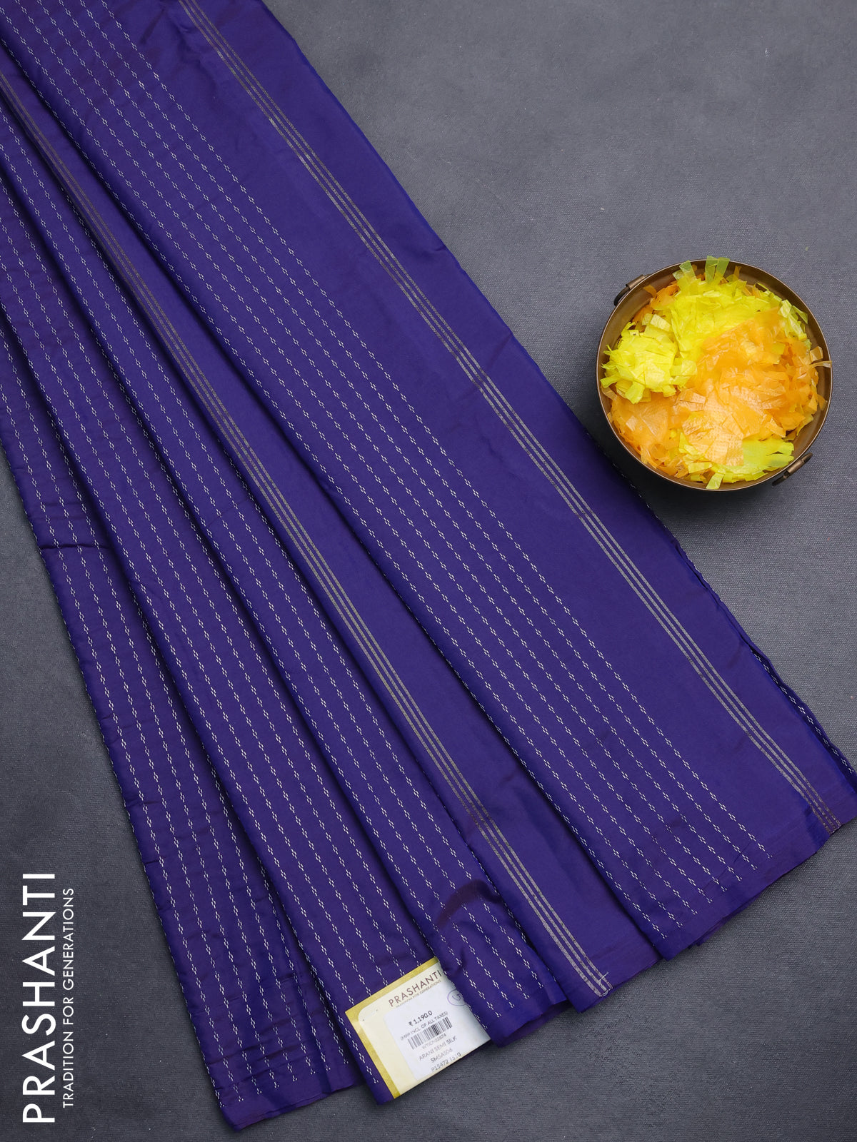 Arani semi silk saree dark blue with allover silver zari weaves in borderless style