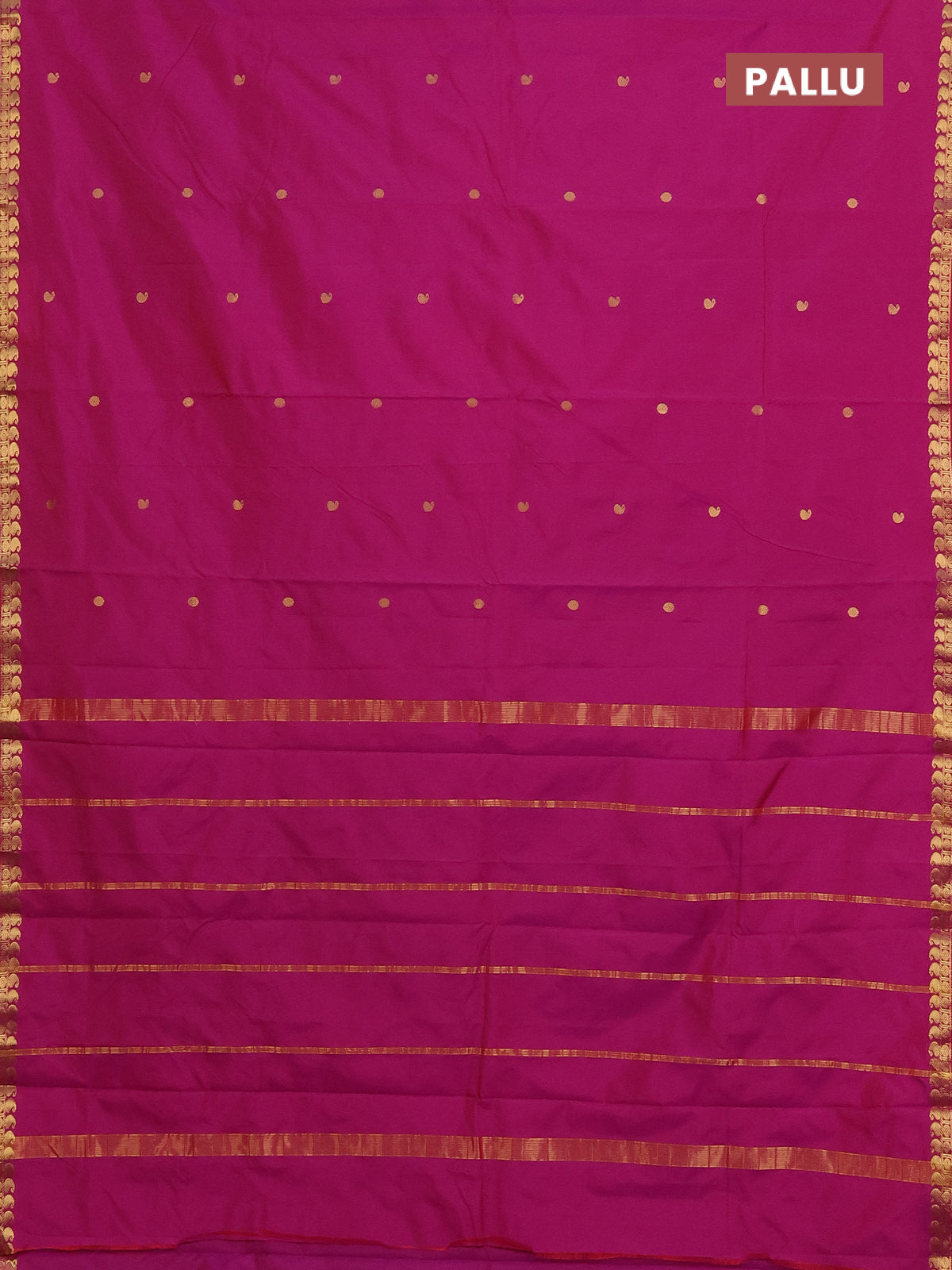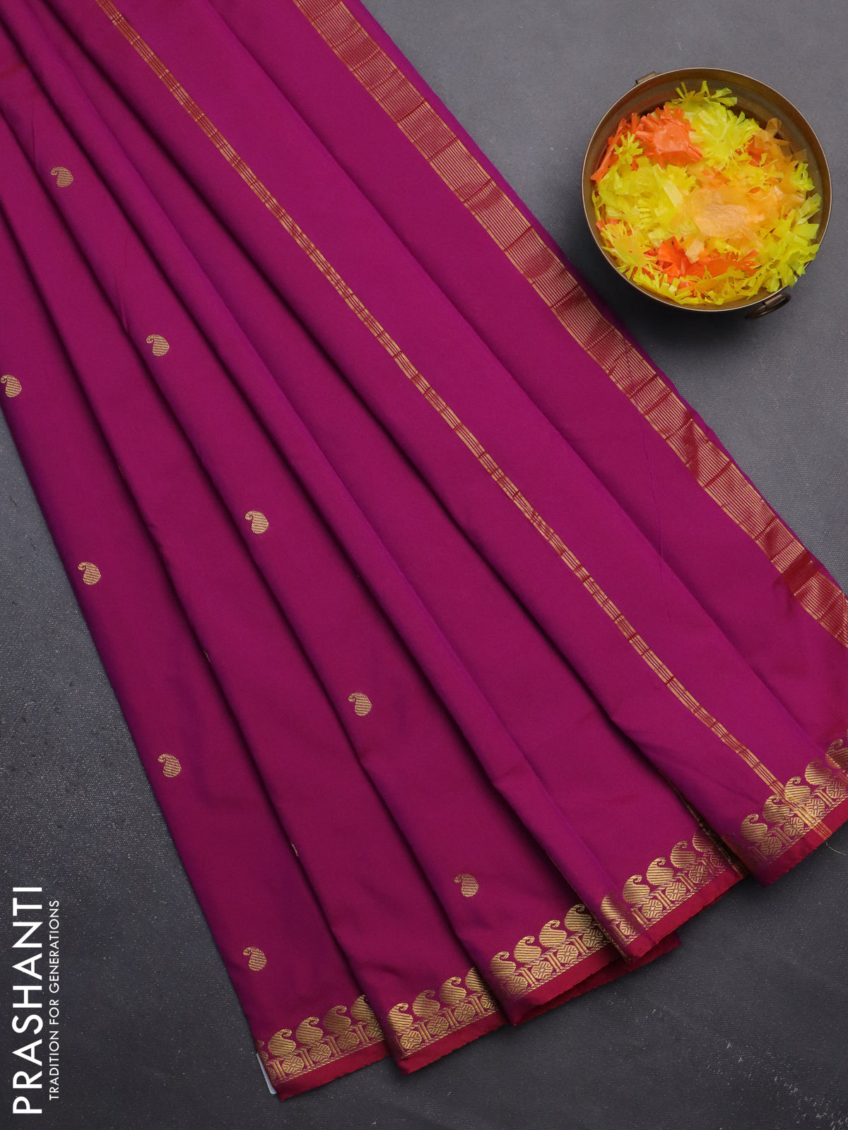 Arani semi silk saree dark magenta pink with rudhraksha & paisley zari woven buttas and zari woven border