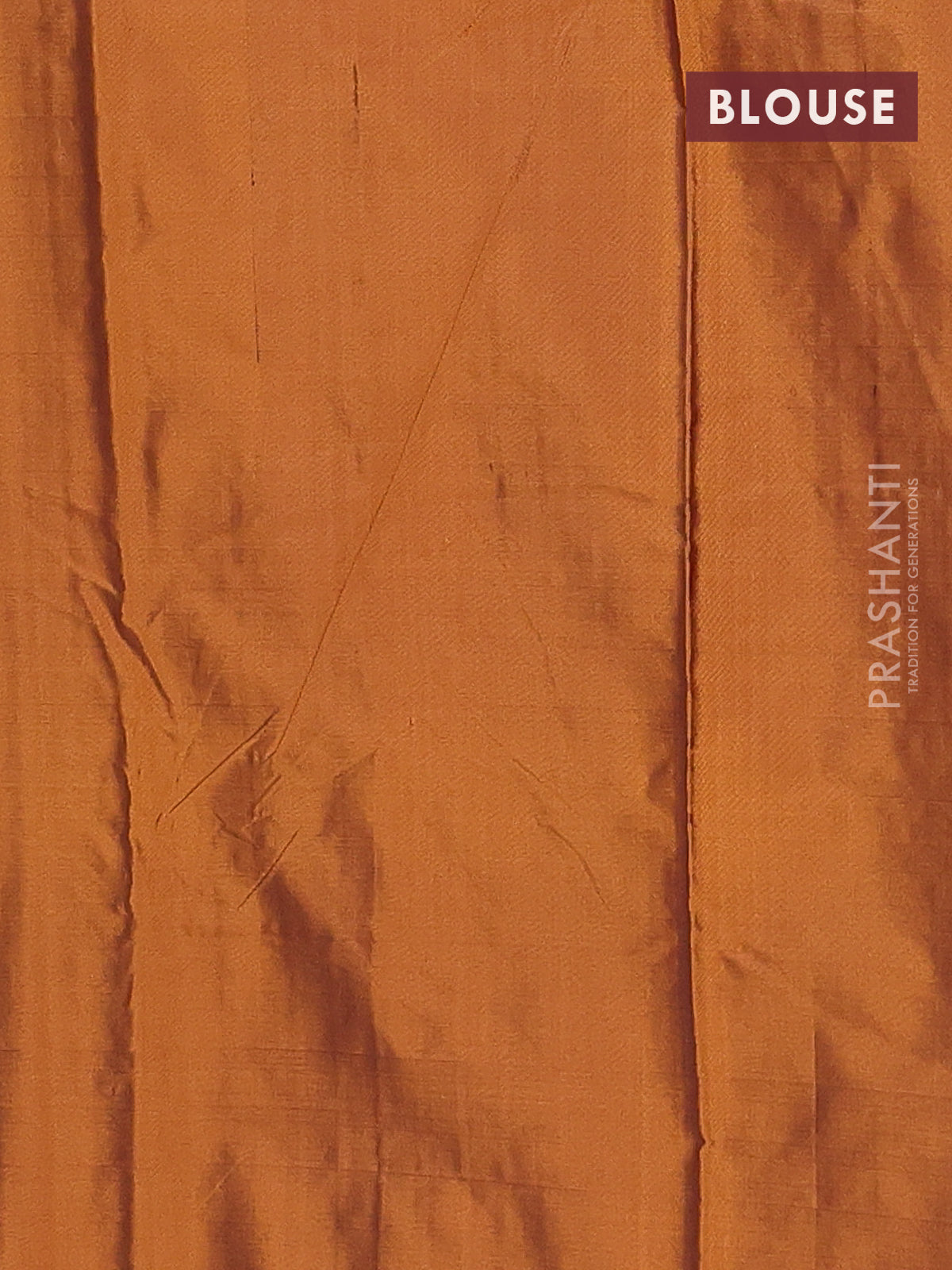Arani semi silk saree dark mustard with zari woven buttas in borderless style