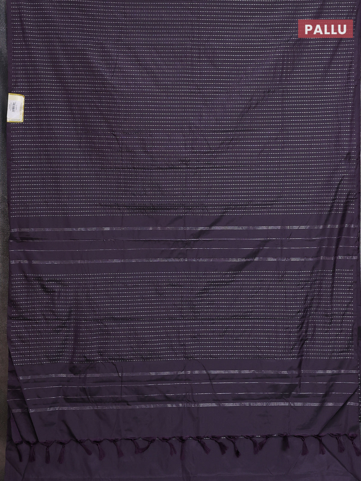 Arani semi silk saree deep jamun shade with allover silver zari weaves in borderless style