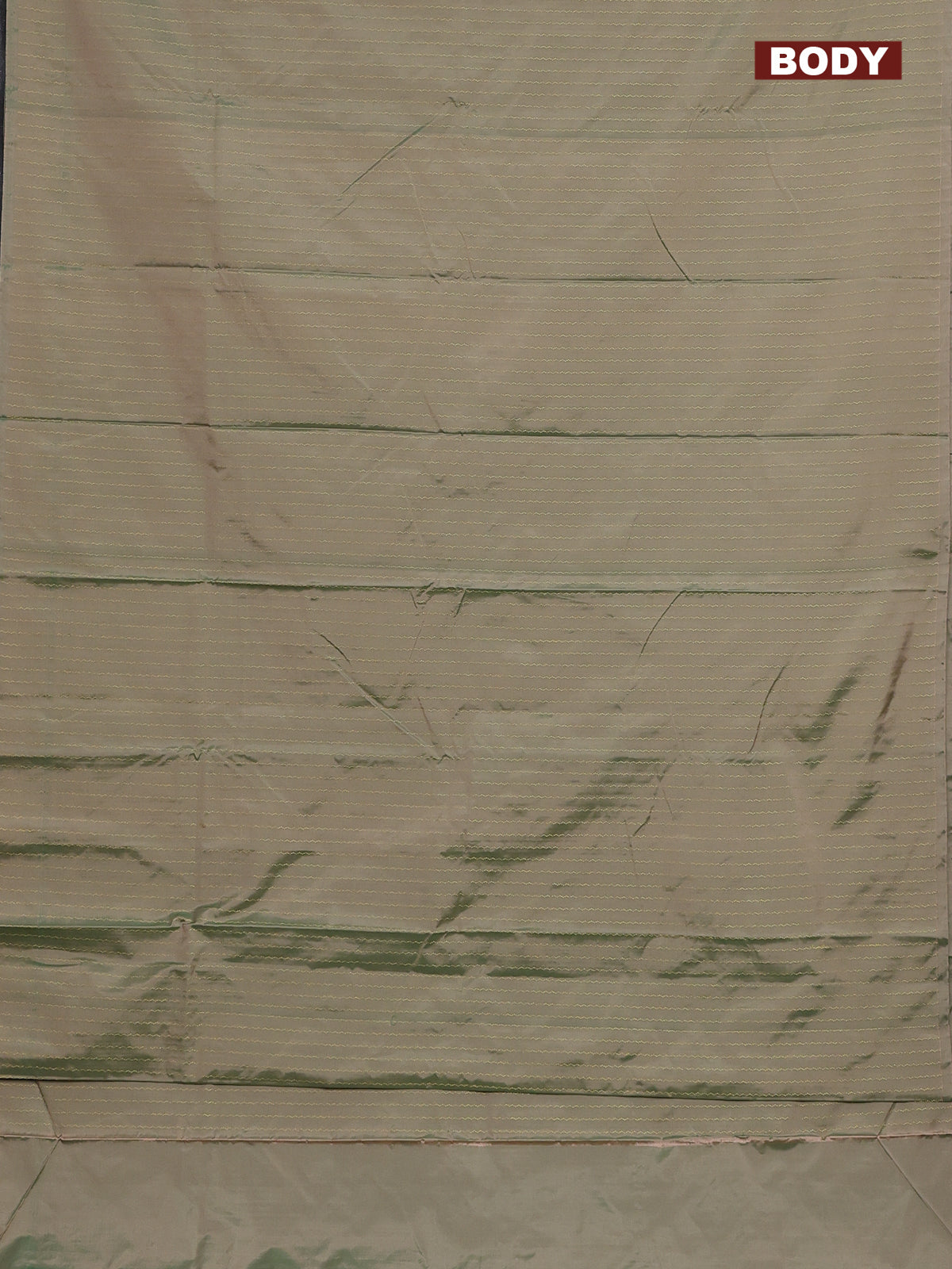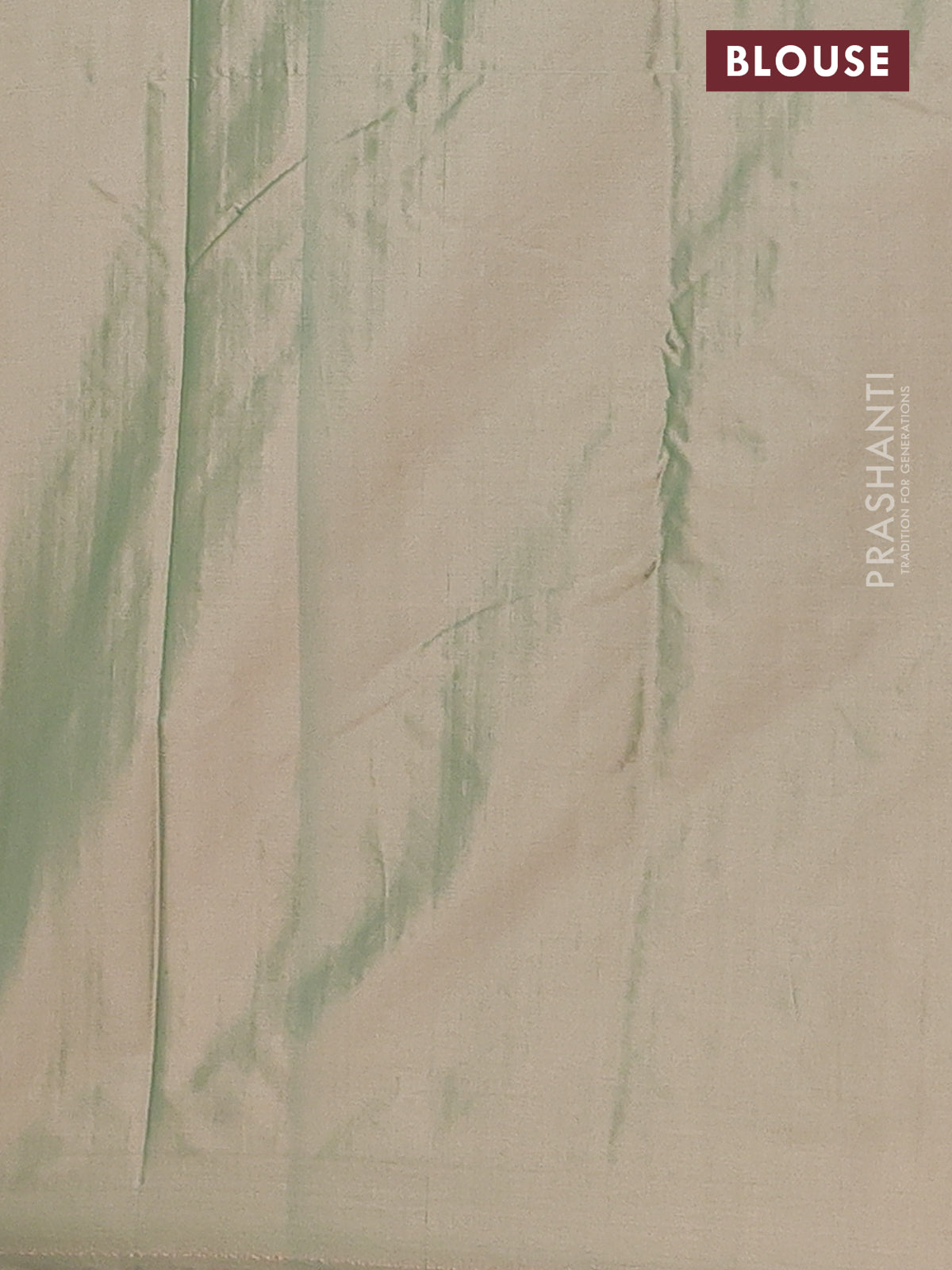 Arani semi silk saree dual shade of green with allover silver zari weaves in borderless style