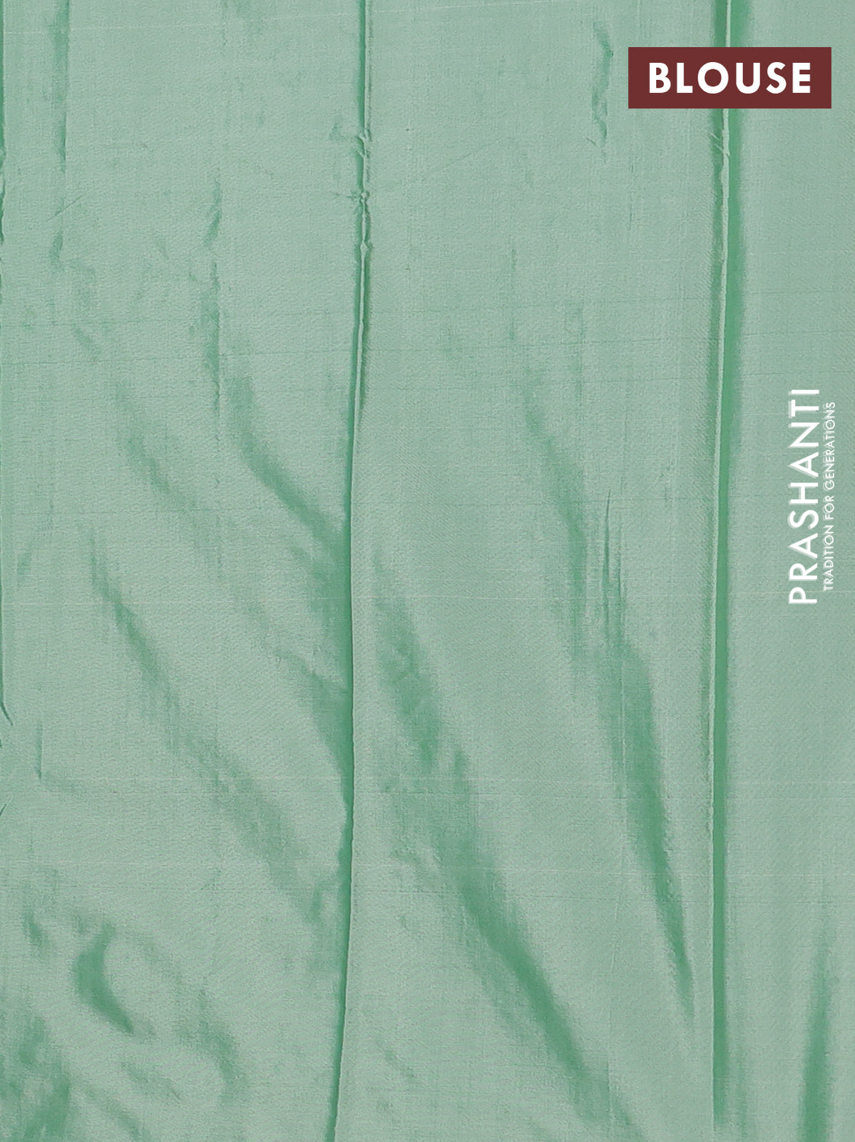 Arani semi silk saree green shade with allover thread weaves in borderless style