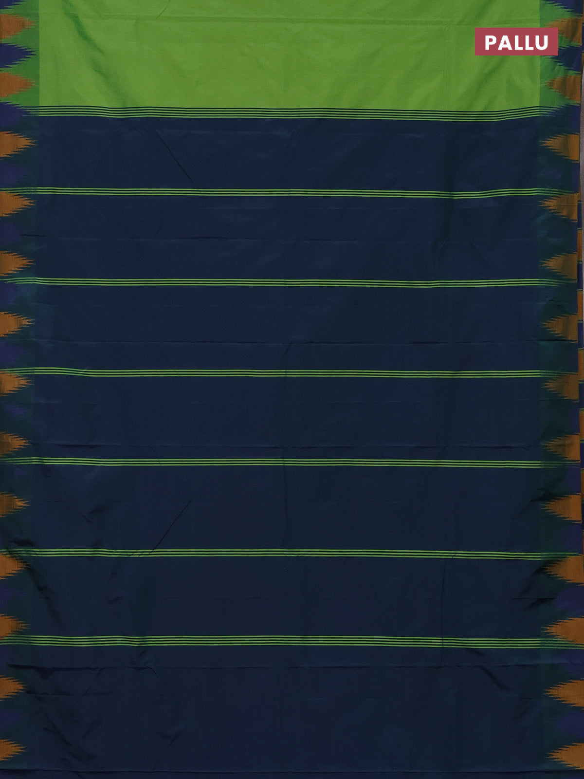 Arani semi silk saree light green and dual shade of blue with plain body and temple design border