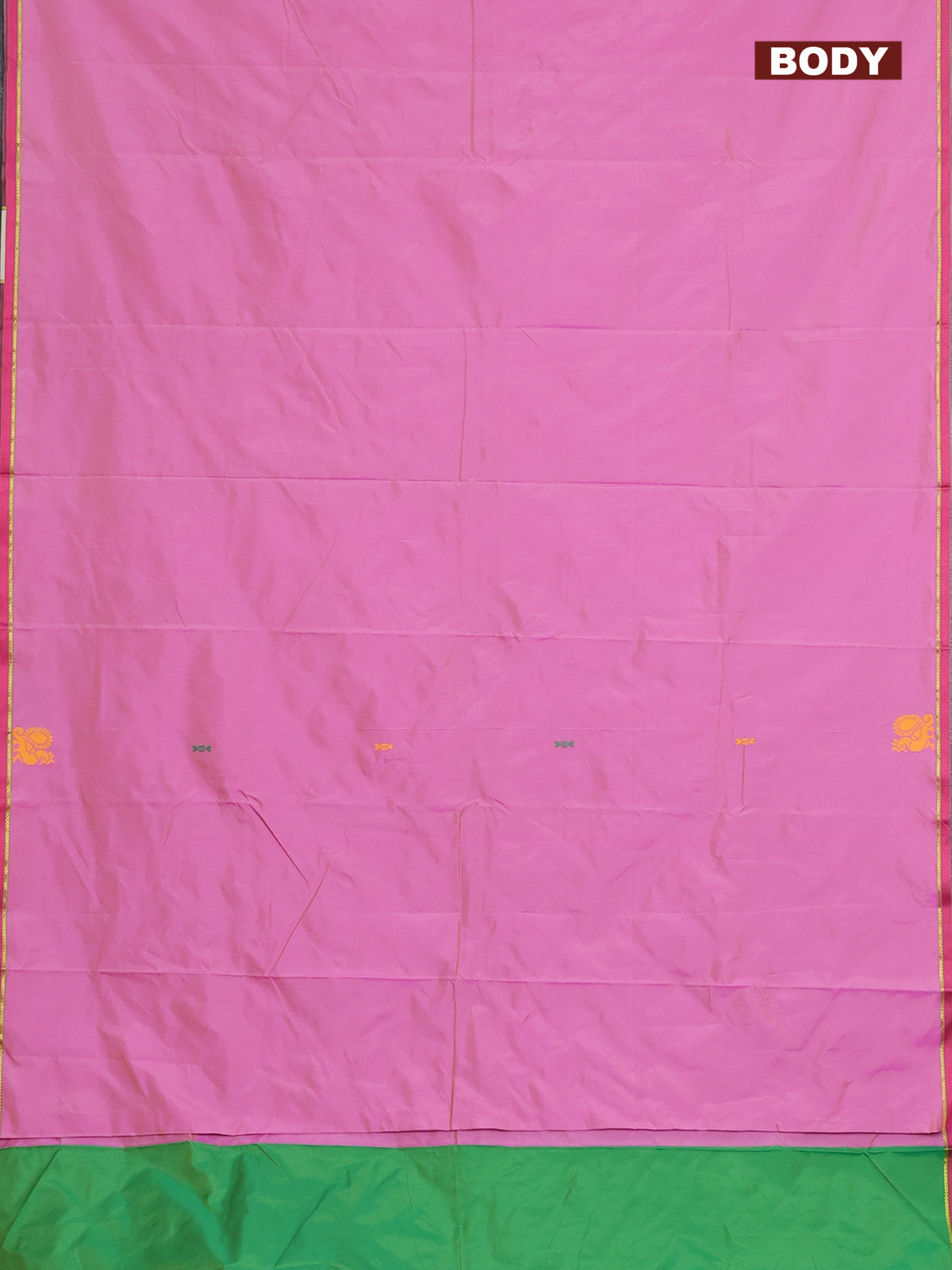 Arani semi silk saree light pink and green with thread woven buttas and thread woven butta border