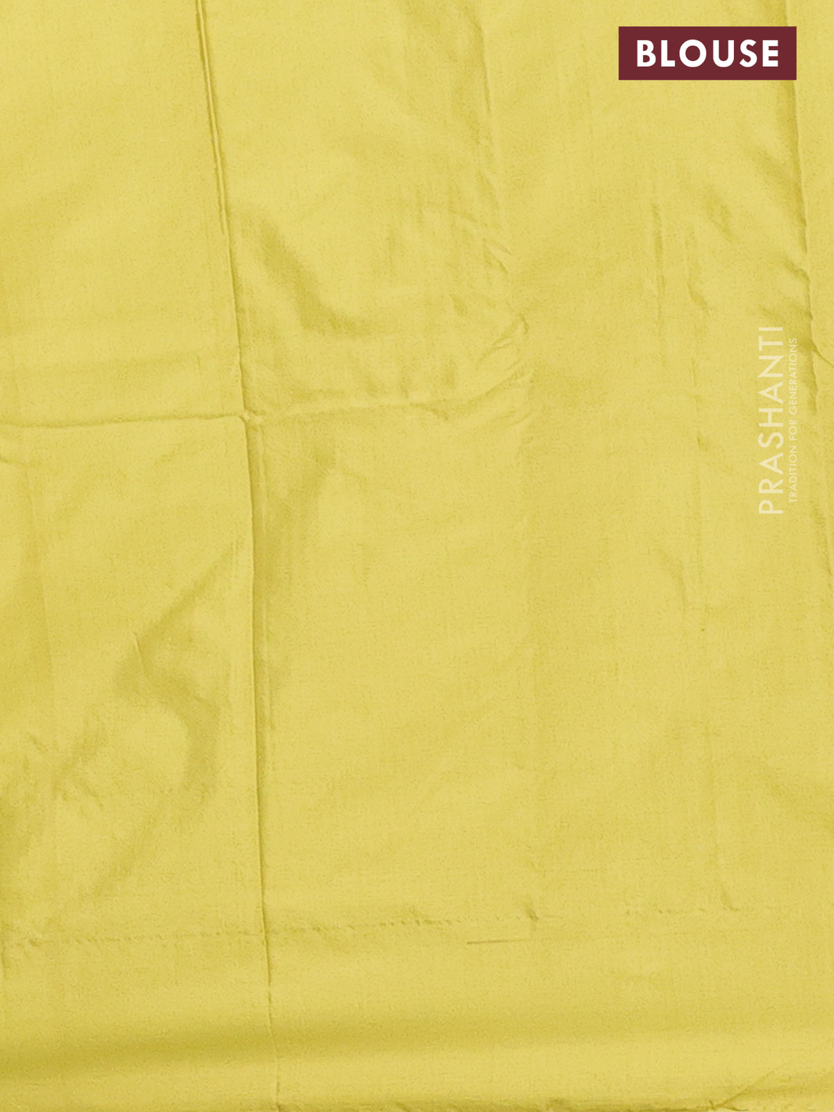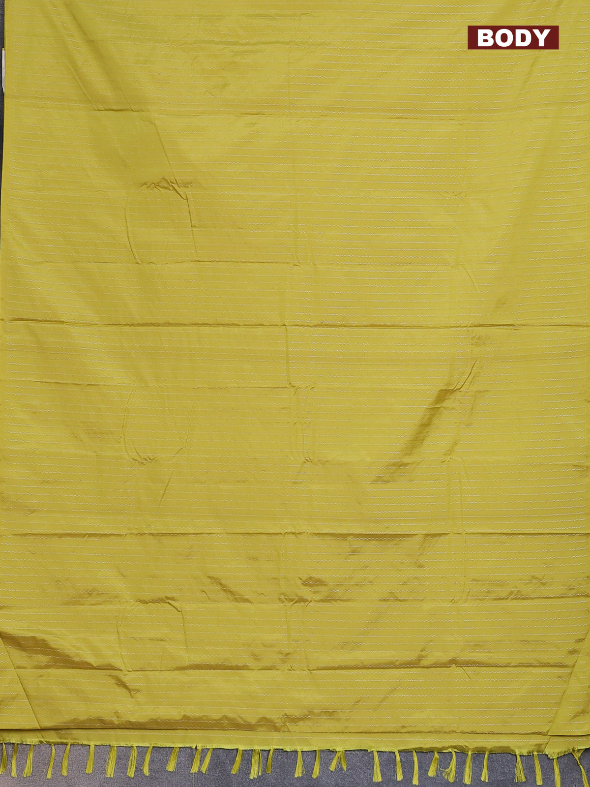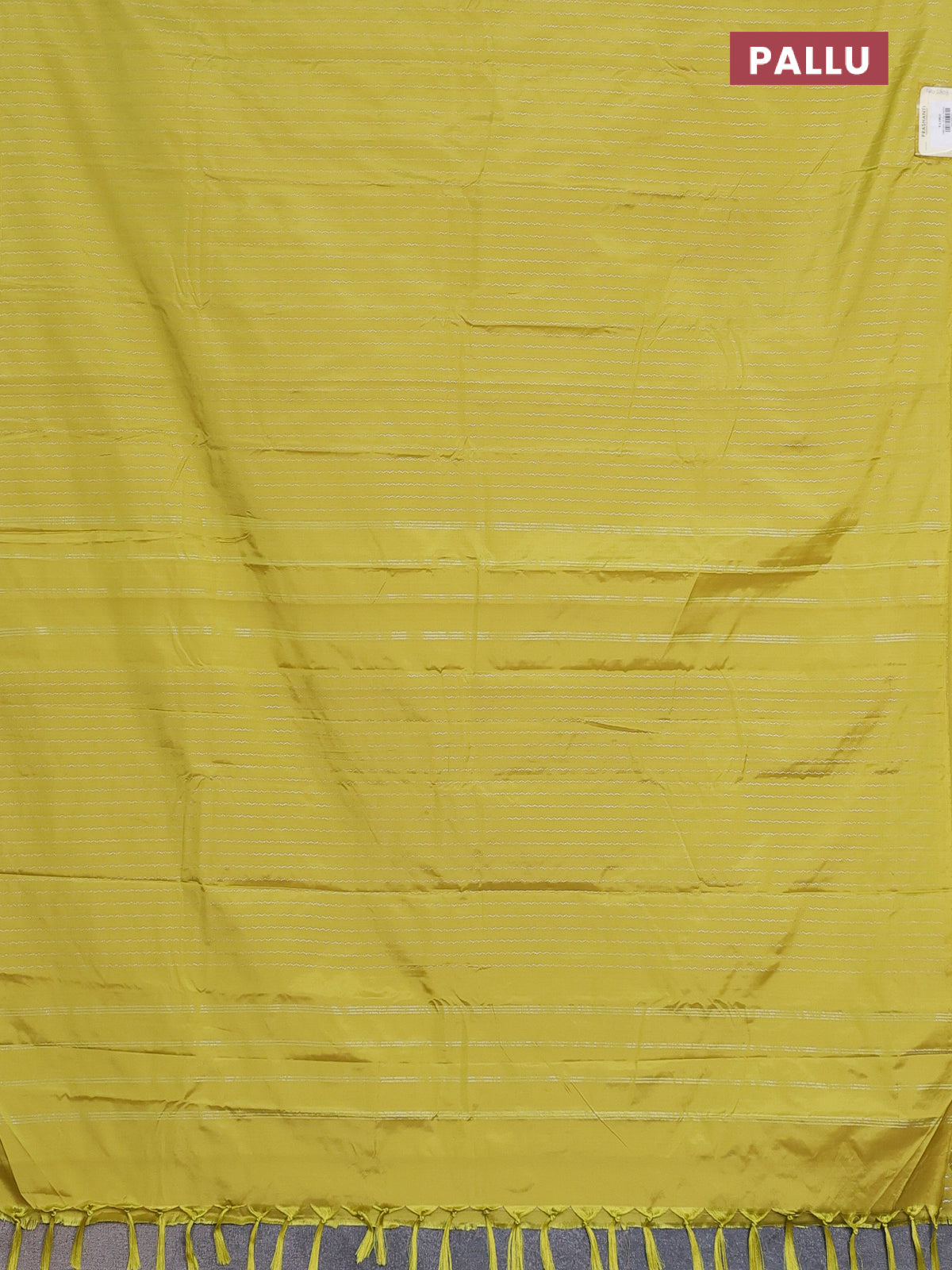 Arani semi silk saree lime yellow with allover silver zari weaves in borderless style