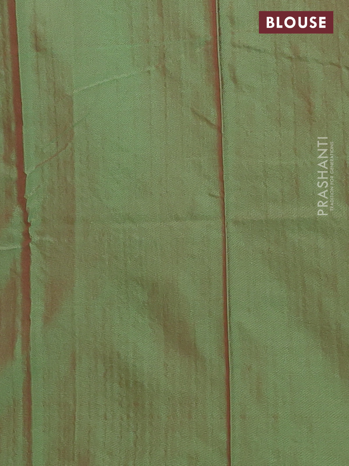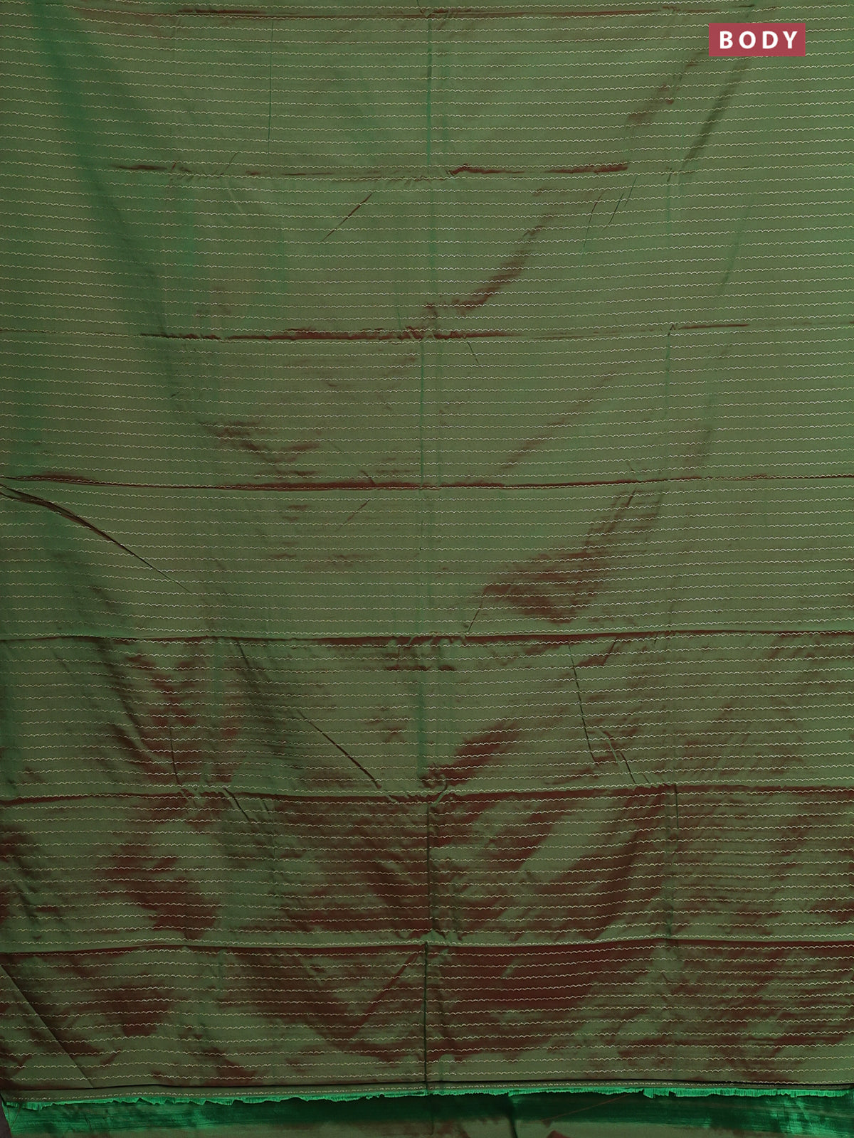 Arani semi silk saree manthulir green with allover silver zari weaves in borderless style