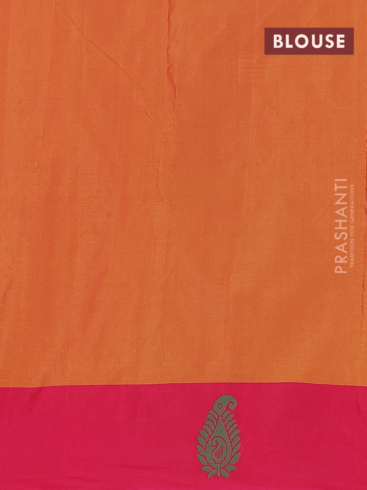 Arani semi silk saree mehendi green and dual shade of yellowish pink with thread woven buttas and thread woven butta border