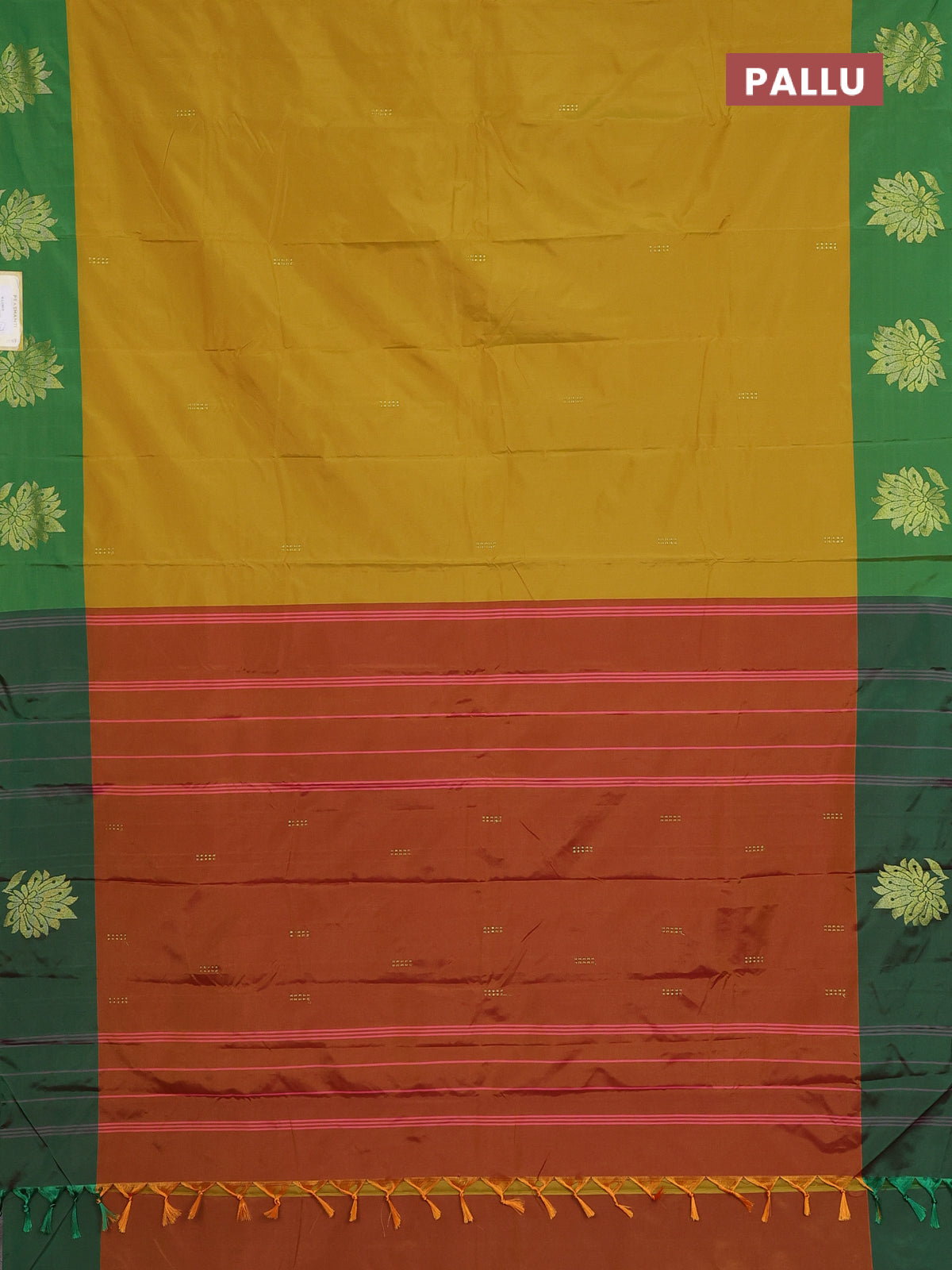 Arani semi silk saree mustard yellow and green with zari woven buttas and zari woven butta border